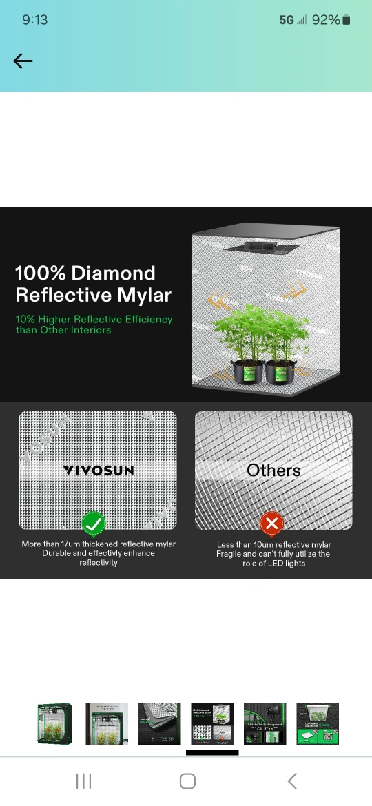 Keeps All Light Inside: The VIVOSUN Hydroponic Mylar Grow Tent is made of high-quality 600D Oxford canvas that is lined with reinforced PE layer and 100%-reflective mylar walls, which can effectively block all light from leaking and boost the output efficiency of your setup;
