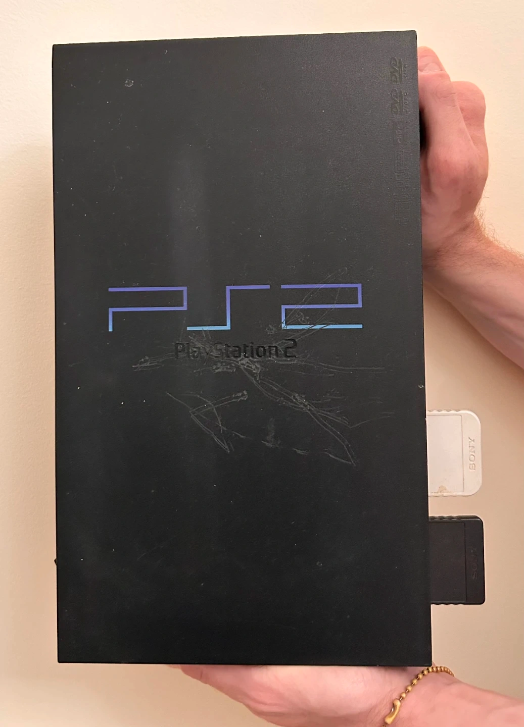 Selling a used Sony PlayStation 2 (PS2) console. It shows signs of wear with some scratches on the surface, but it's still functional. Model number is SCPH-30001. Perfect for playing your favorite PS2 games!