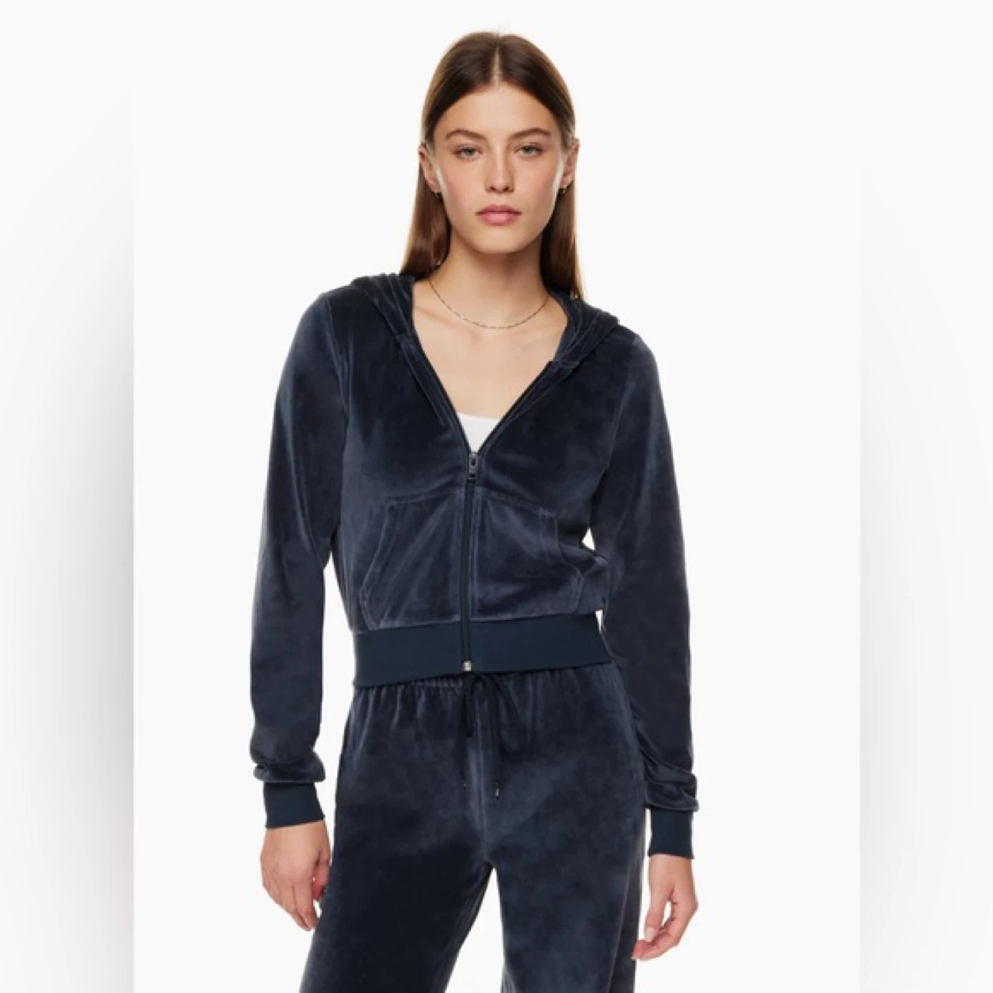 TNA Aritzia Black Velour Cropped Zip Hoodie