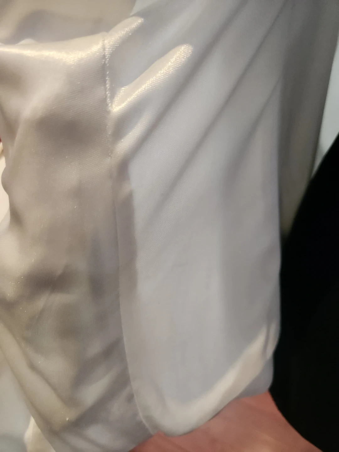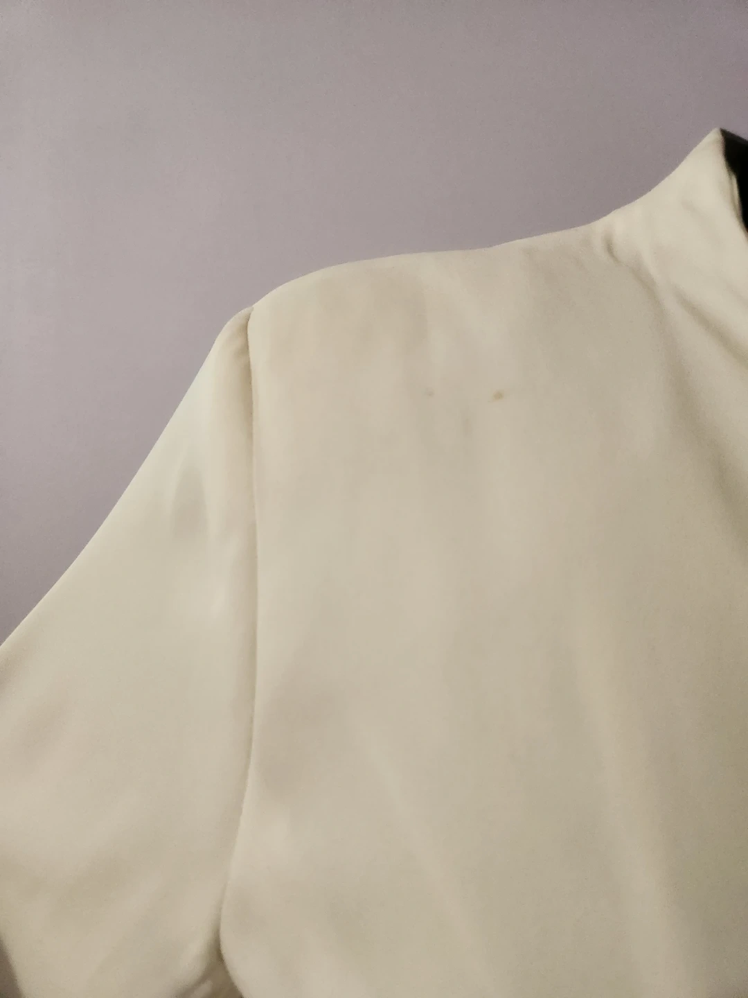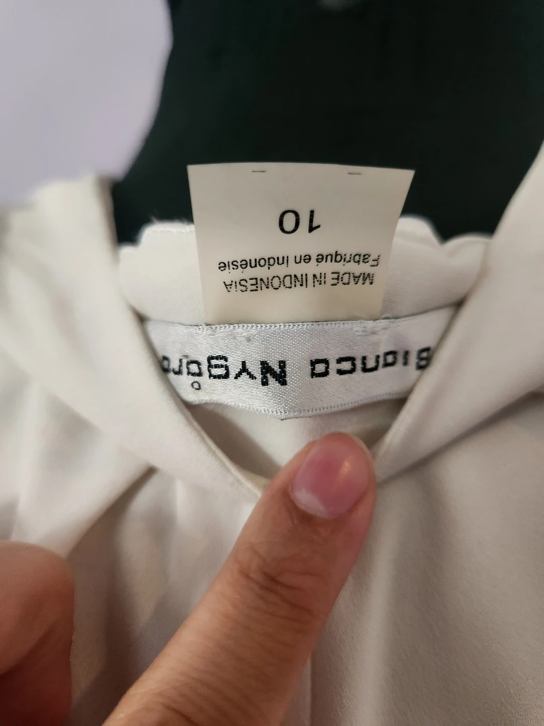 White Bianca Nygard blazer with zip pockets. Size 10. This blazer is perfect for layering over outfits for a polished look. Soft inner lining. Shoulder pads. Minor, small staining on top right shoulder. Worn twice.