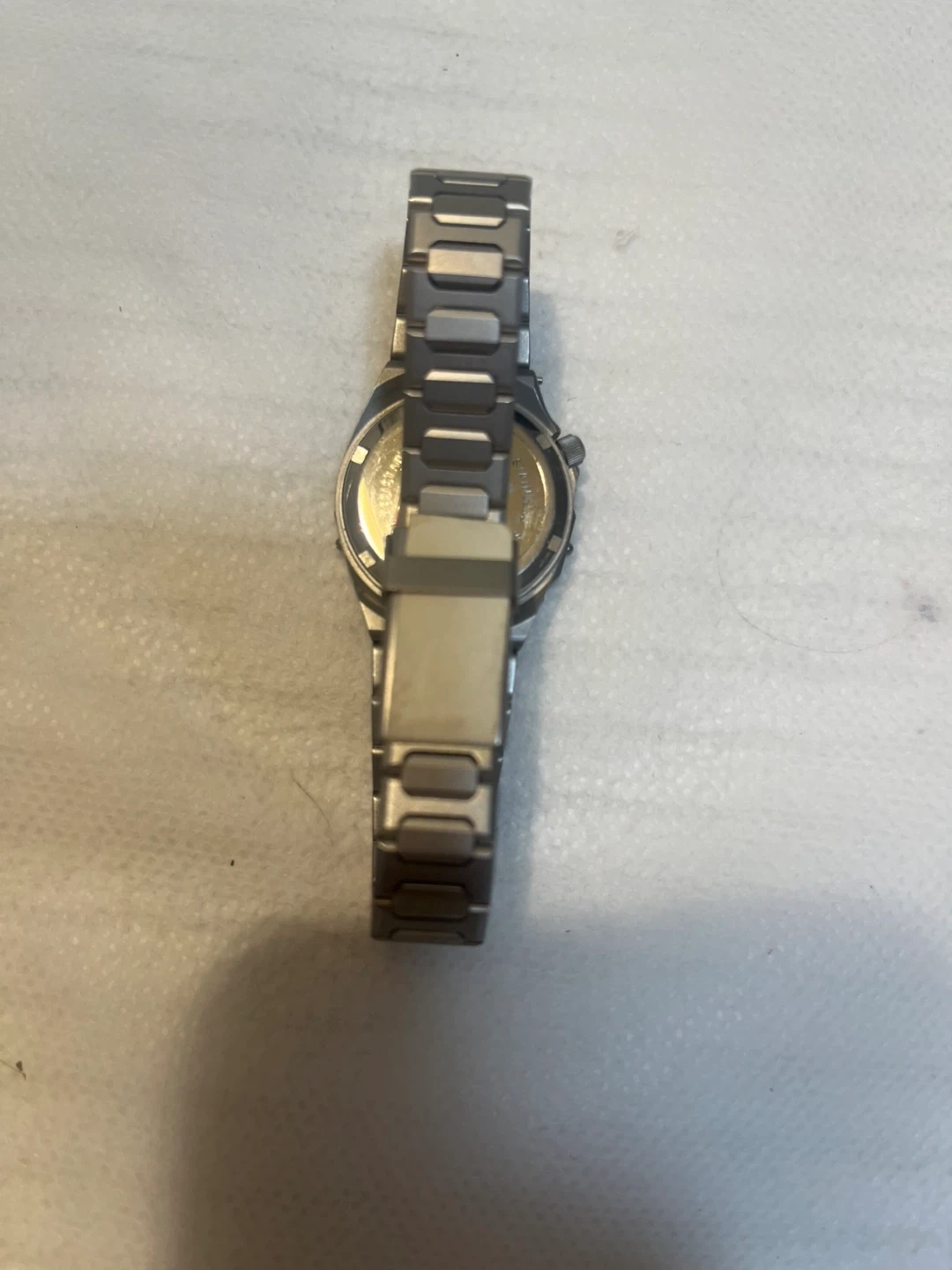 This is a Citizen Eco-Drive watch with a stainless steel band. It has a gold-tone dial with luminous markers. It's a reliable timepiece for everyday wear.