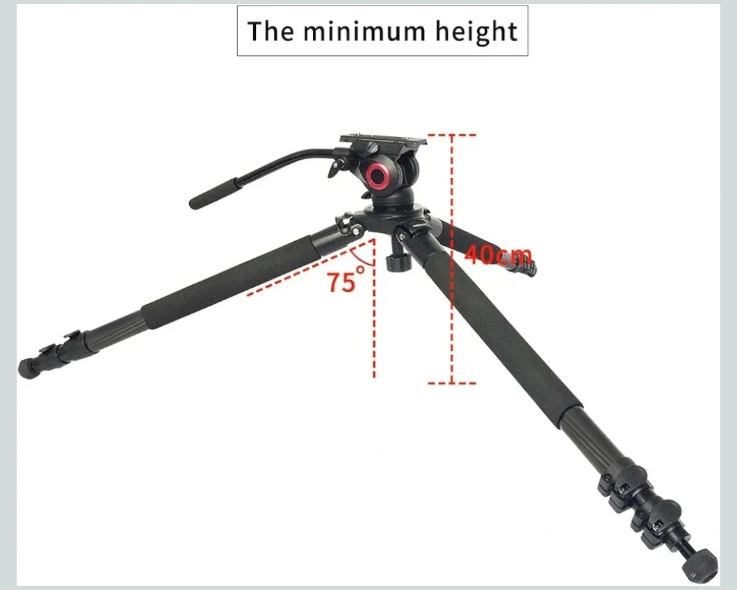 The tripod has a 15.7" minimum height, and it extends to a maximum height of 66.9". The fluid head features a 360° pan rotation and a +90/-70° tilt range, and it includes a pan bar and bubble level to make balance and movement smooth and easy. The full tripod and fluid head kit weighs 9.6 lb.