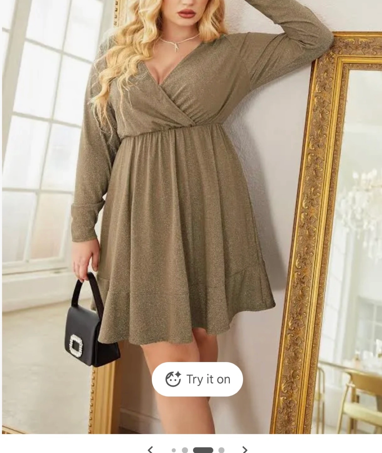 This IN'VOLAND dress features a flattering wrap front and a shimmering sparkle detail. It has a comfortable ruched waistband and a flounced hem. Made in China.
