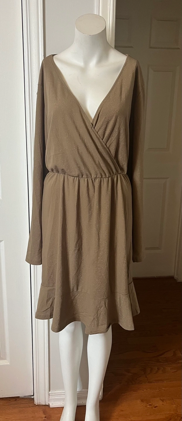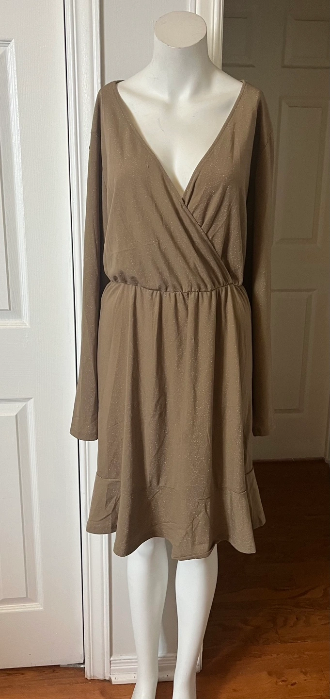IN'VOLAND Women's Plus Size 22W Brown Sparkle Wrap Dress