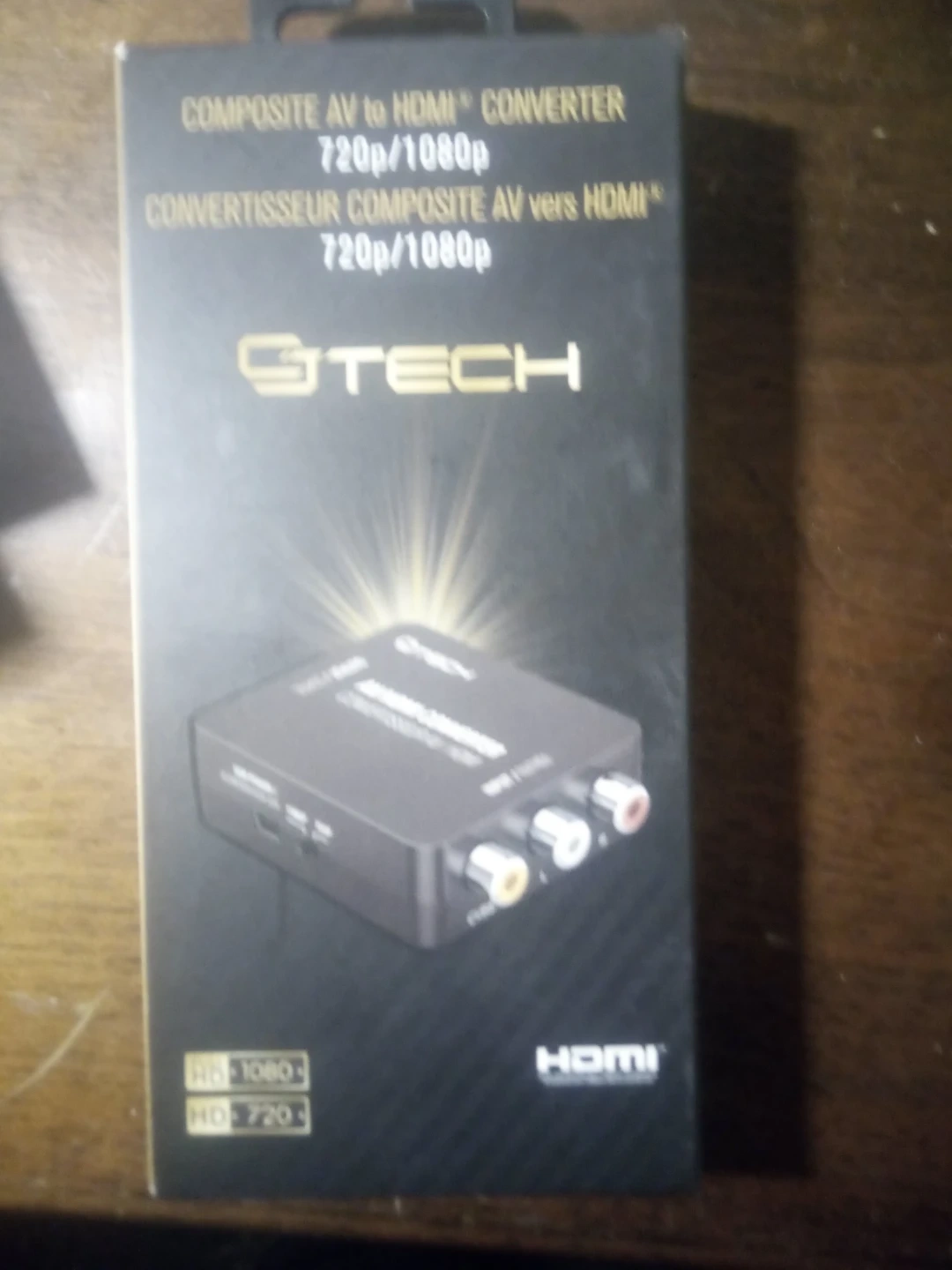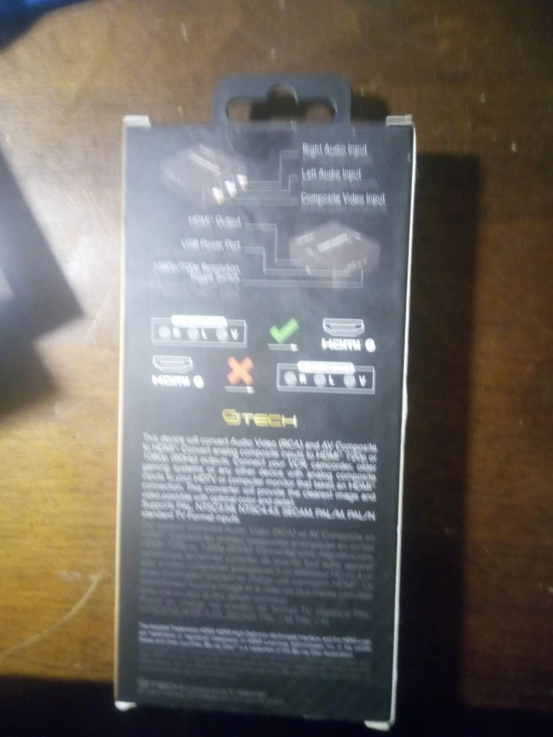 This device converts audio video (RCA) and AV components to HDMI. It supports 720p or 1080p resolution. Supports USB power port for convenience.