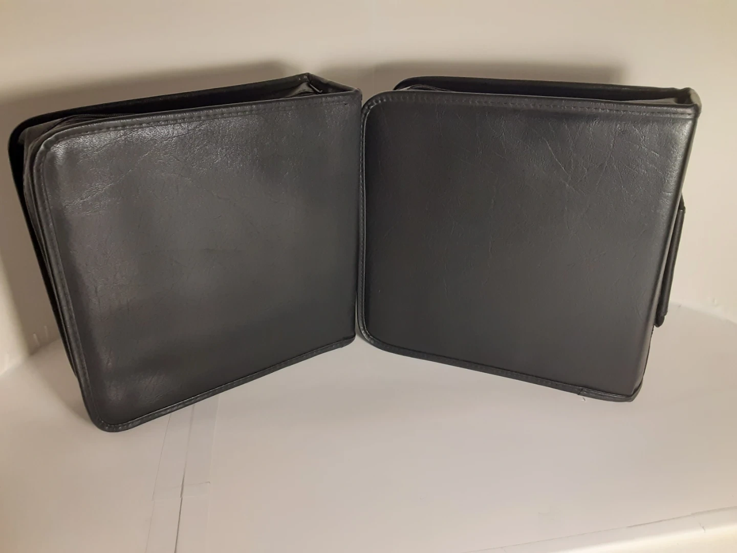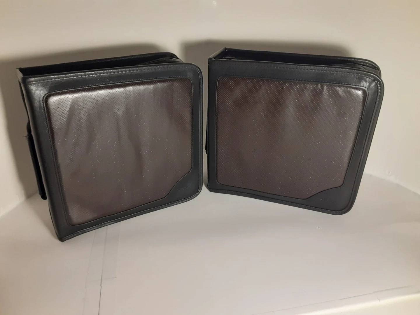 2 Memorex black and brown faux leather CD cases, each have 32 pages/256 slots. Both are in excellent condition, the only damage I could find is photographed and only in one of the cases. Perfect to organize your collection in style. SOLD TOGETHER.