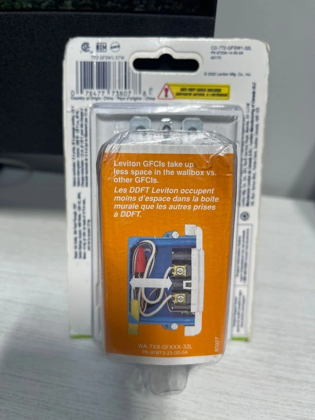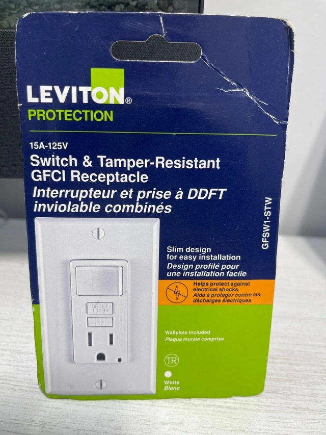 Brand new with box. Model: GFSW1-STW. Retail Price $45.87+ tax. Seller Price: $35. Pickup location: Islington and Rexdale, Etobicoke. Please call or message us at 416-722-2955. Only cash accepted. The SmartlockPro Self-Test GFCI tests itself even if you forget. Designed to meet the latest UL standard for auto-monitoring (self-test). Our complete line of self-test GFCIs periodically conduct an automatic internal test to confirm that it can respond to a ground fault. With the slimmest profile on the market, the device allows for fast and easy installation, while Leviton’s patented reset lockout mechanism prevents reset of the GFCI if it is not wired or operating correctly. The SmartlockPro Self-Test GFCI is the smart choice in ground fault circuit interrupter protection.
