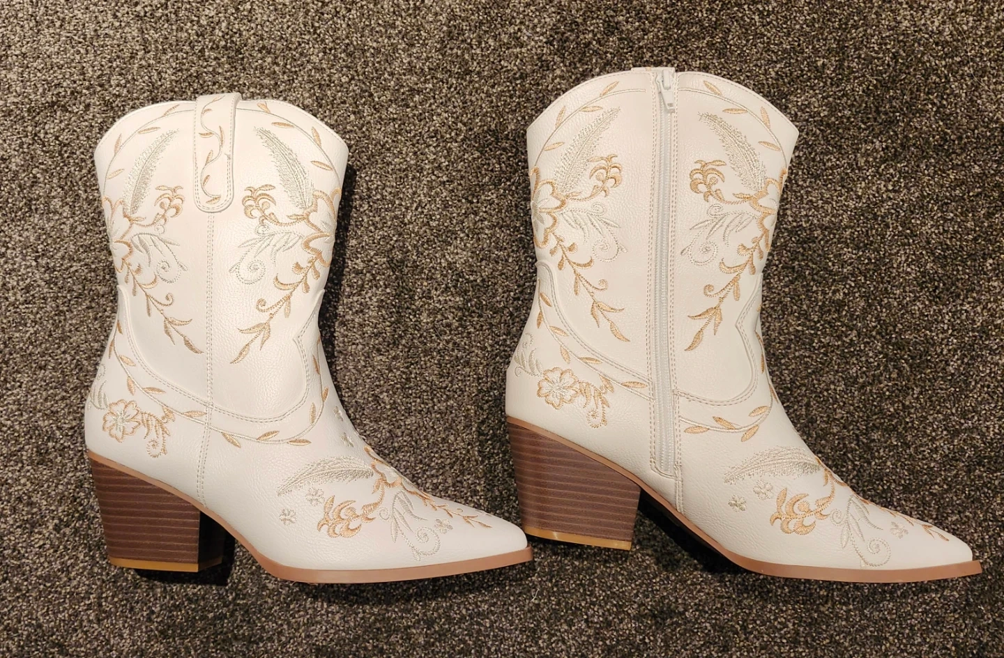 Buy & SellAnjoufemme White Embroidered Cowboy Boots Size 8.5Anjoufemme White Embroidered Cowboy Boots Size 8.5$70White cowboy boots with intricate gold embroidery. Features a pointed toe, stacked heel, and side zipper closure. Includes original dust bag.ConditionNewSize8.5WHERE TO MEEThollick kenyonView MapSELLERverifiedTLHollick Kenyon64252 reviews0 chats·0 favorites·7 viewsSEND CHAT TO SELLERHi TL! I’m interested in your listing.Hi TL! I’m interested in your listing.Get the Karrot app to chatSign In to chat