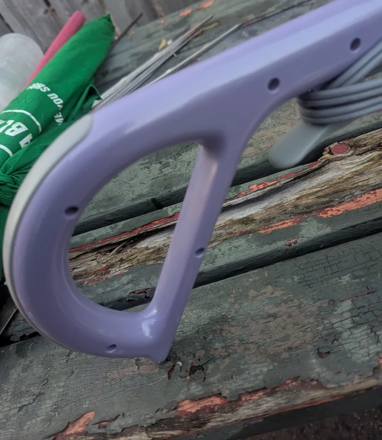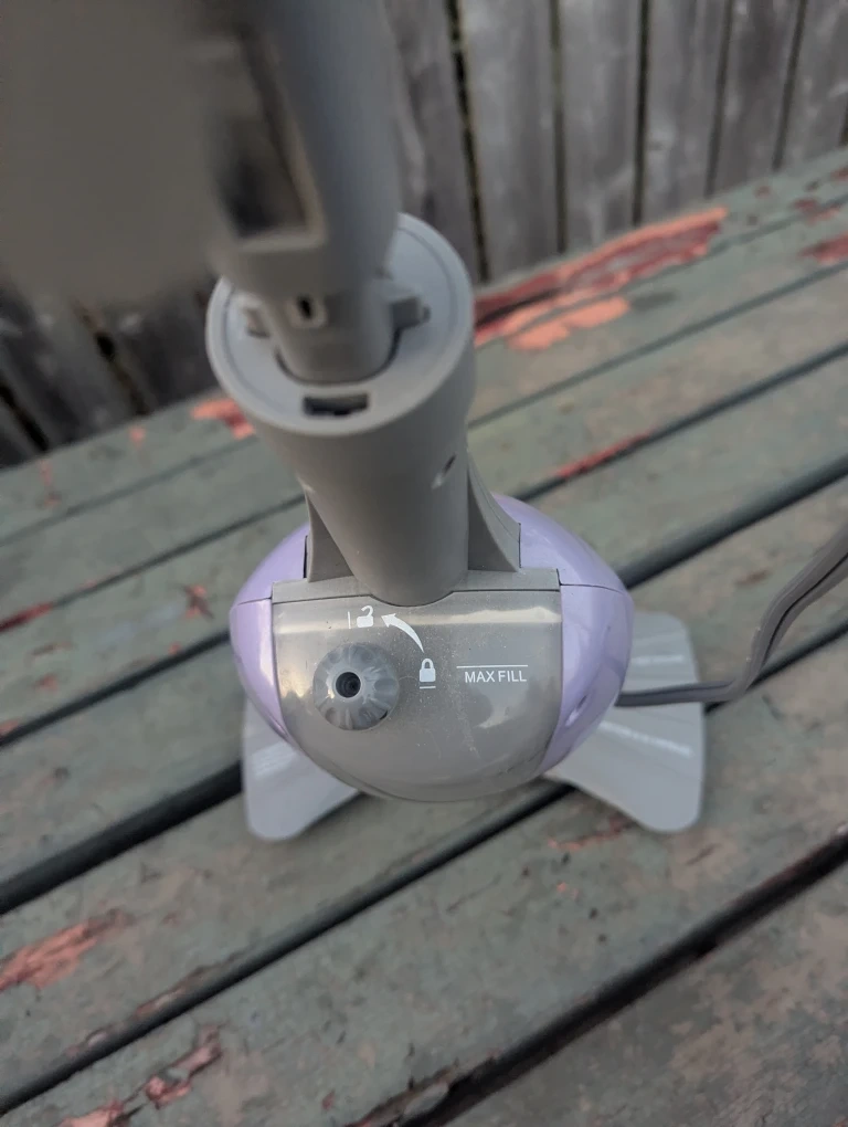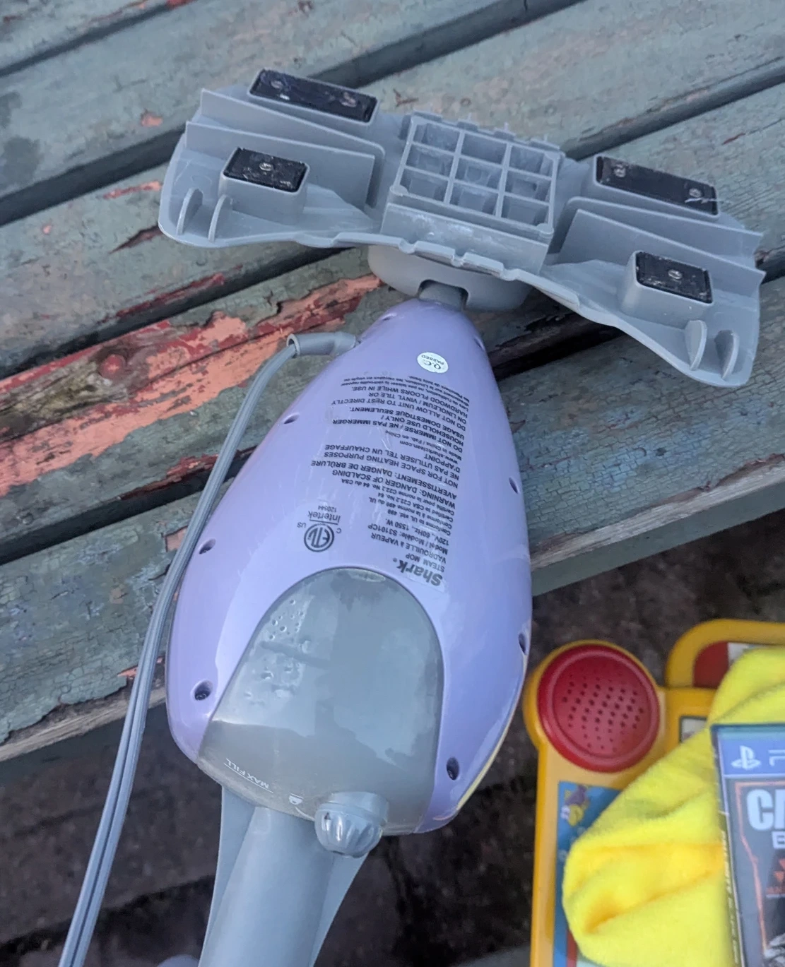Selling a Shark steam mop in a lovely purple colour! It's in great condition and ready to help you keep your floors sparkling clean. It includes the mop head attachment and power cord, so you're all set to go!