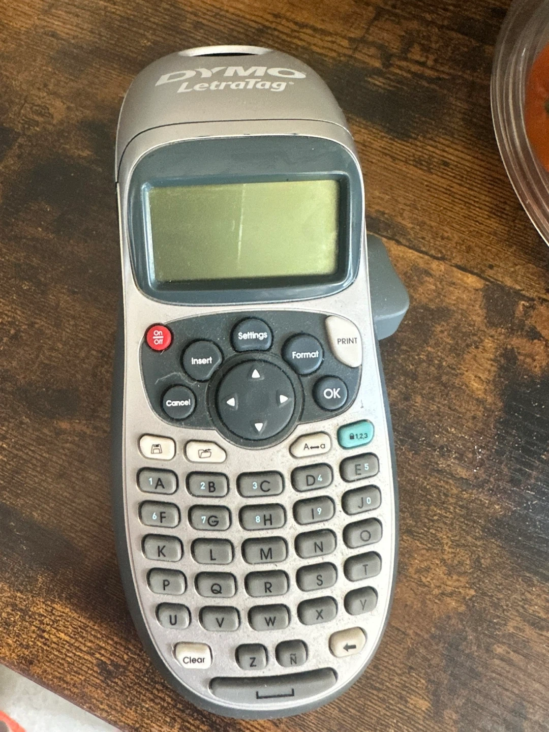 This is a Dymo LetraTag handheld label maker. It has a QWERTY keyboard and a display screen for creating custom labels. Perfect for organizing your home or office!