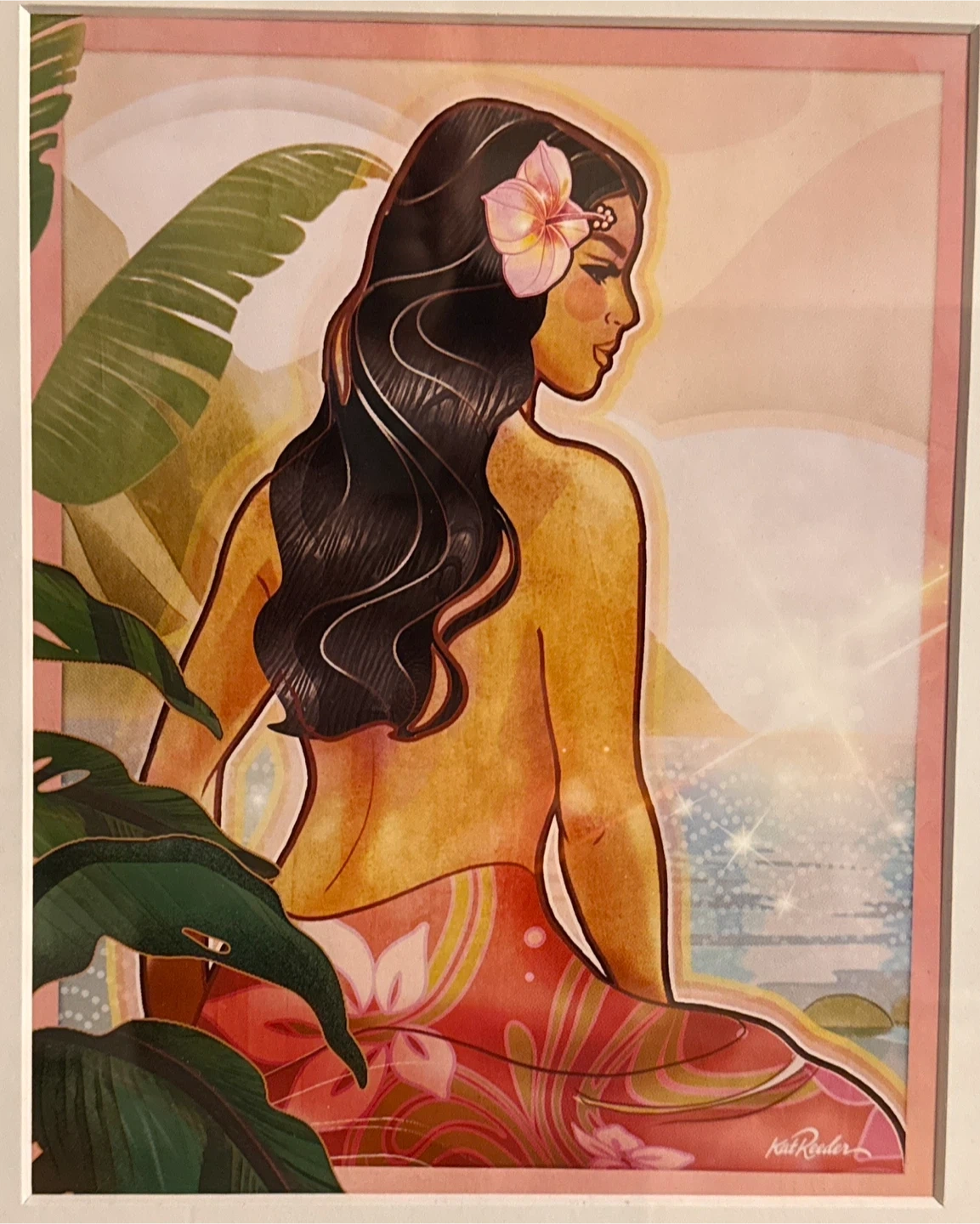 Selling a framed art print by Kai Reeder. It features a lovely tropical scene with a woman and lush greenery. It's in great shape and ready to add a touch of paradise to your home