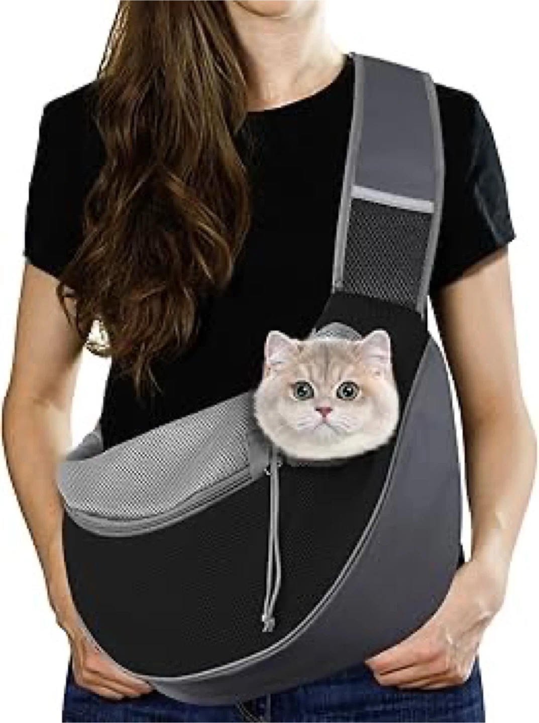 This pet sling carrier is perfect for taking your furry friend on the go! It features: