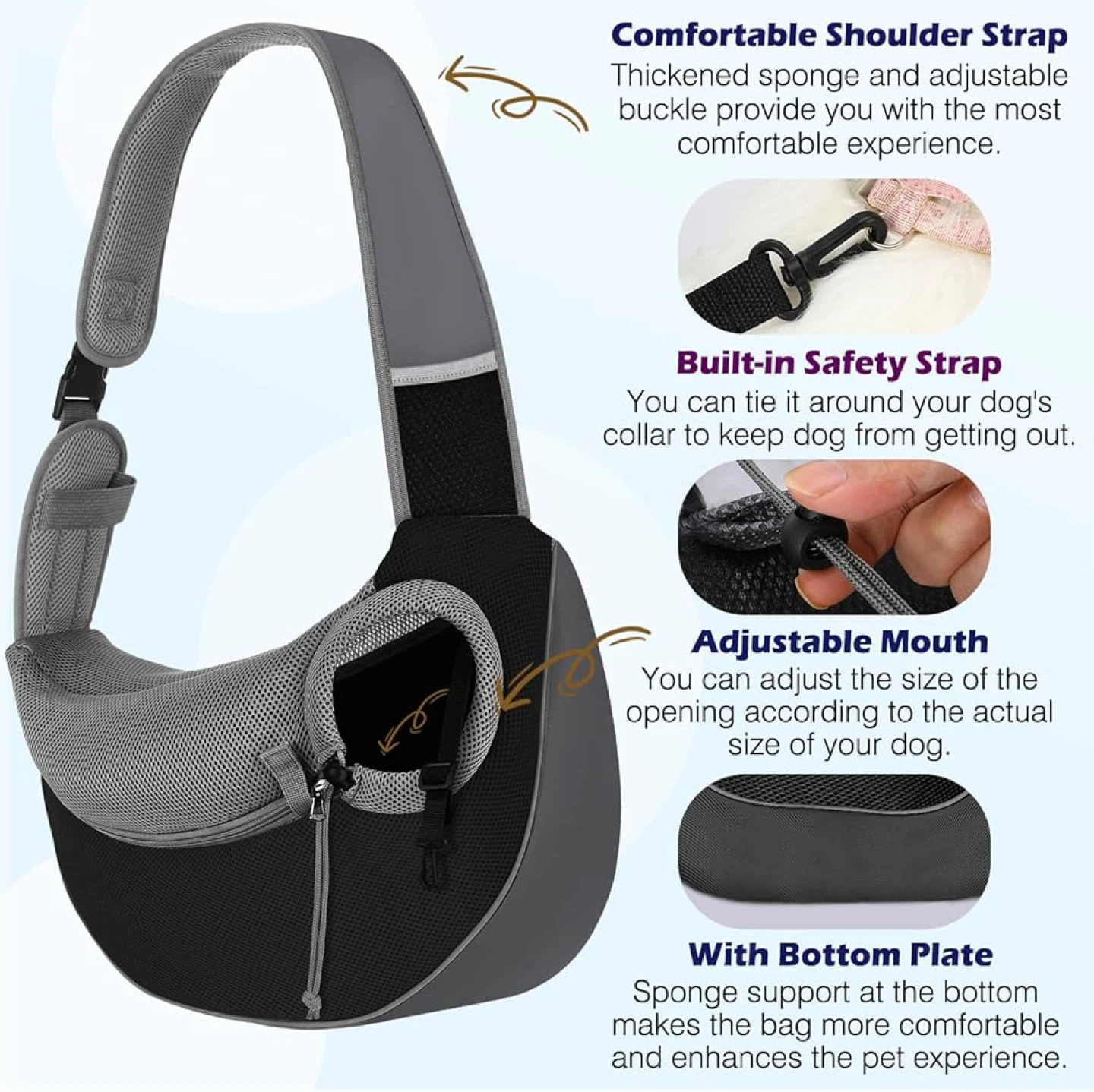 This pet sling carrier is perfect for taking your furry friend on the go! It features: