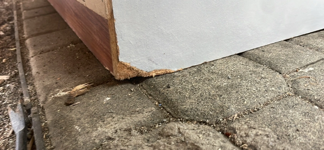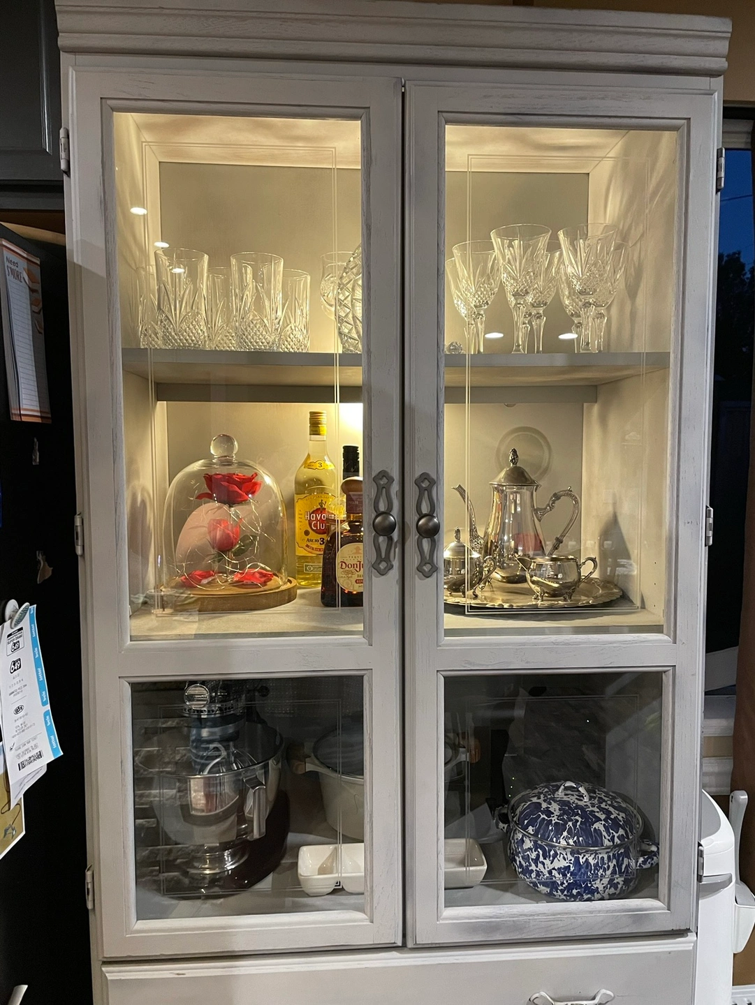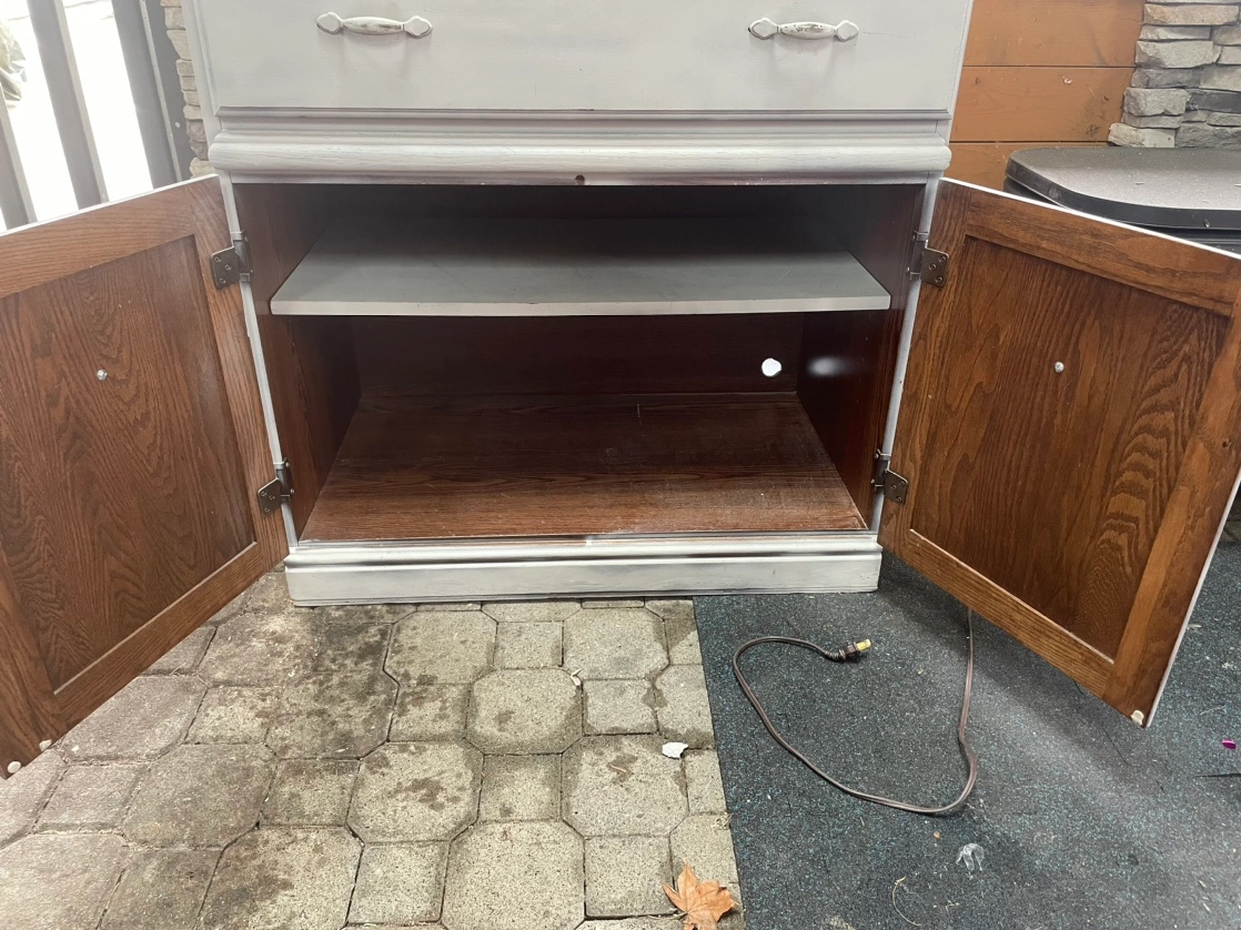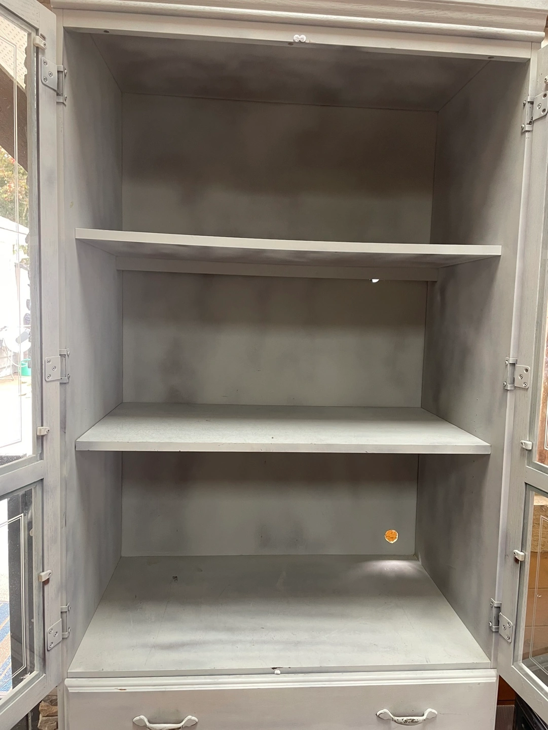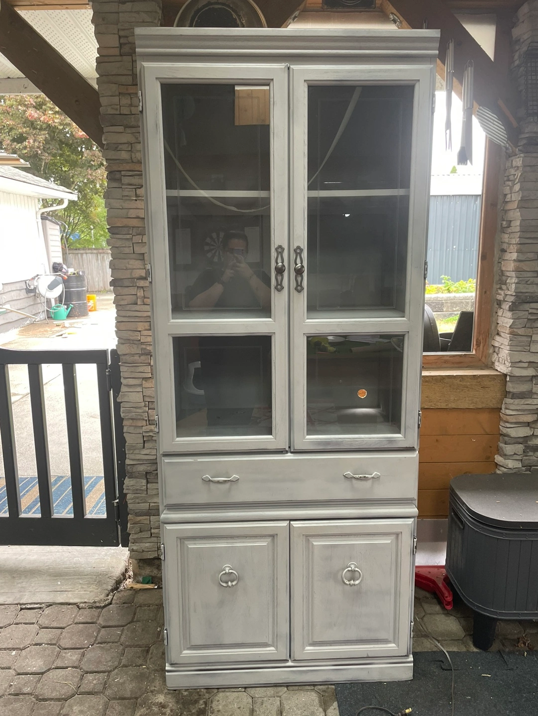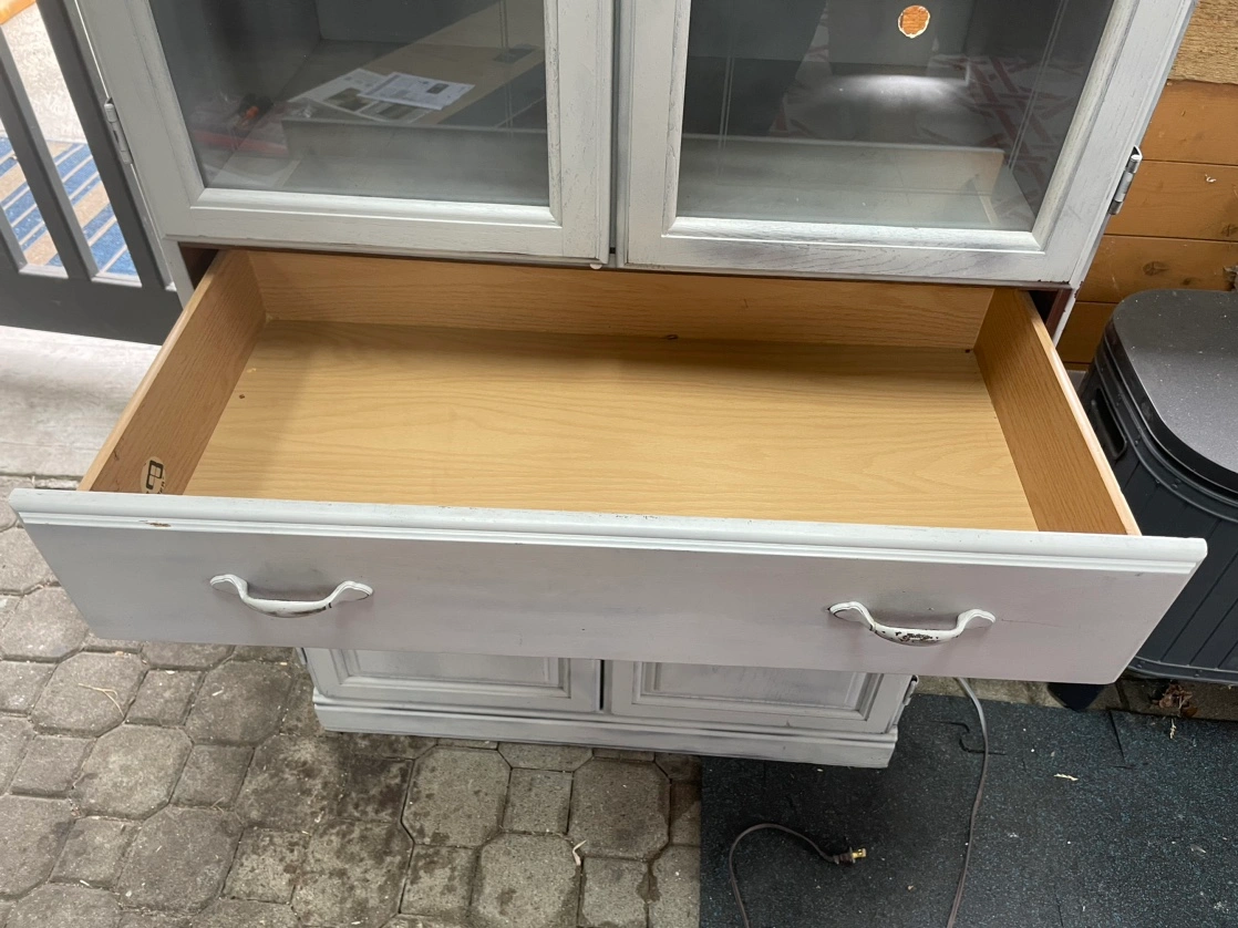 Distressed grey china cabinet