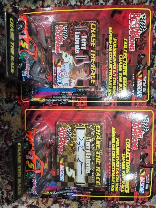 Up for grabs are two sealed Racing Champions Terry Labonte NASCAR collectible cars, one with an actual driver autograph! These 1:64 scale die-cast replicas are perfect for any racing enthusiast's collection. The autographed version adds a unique touch of authenticity. Both cars are in excellent condition, sealed in their original packaging, ready to be displayed or added to your collection.