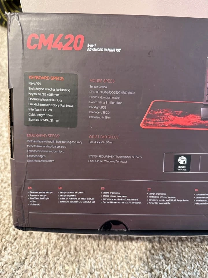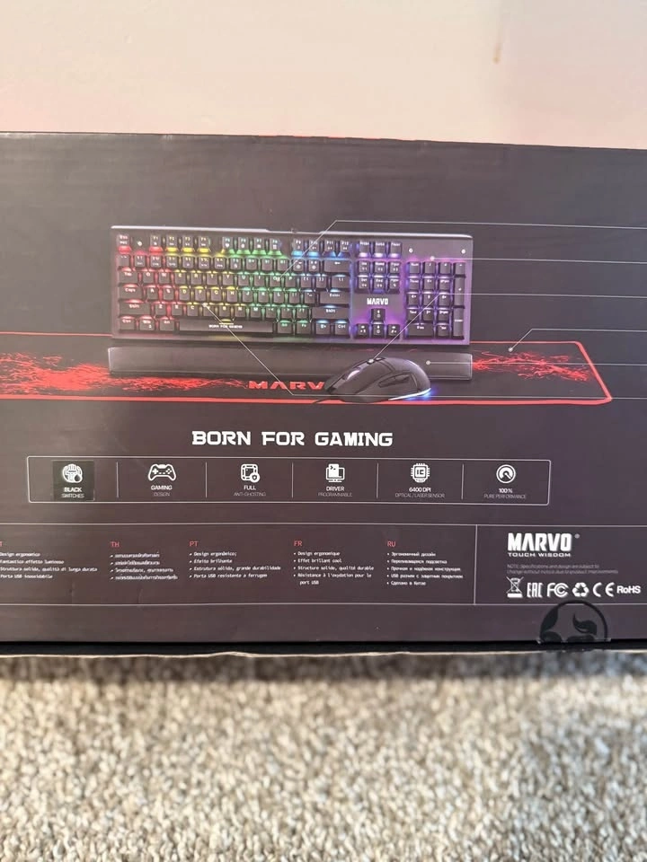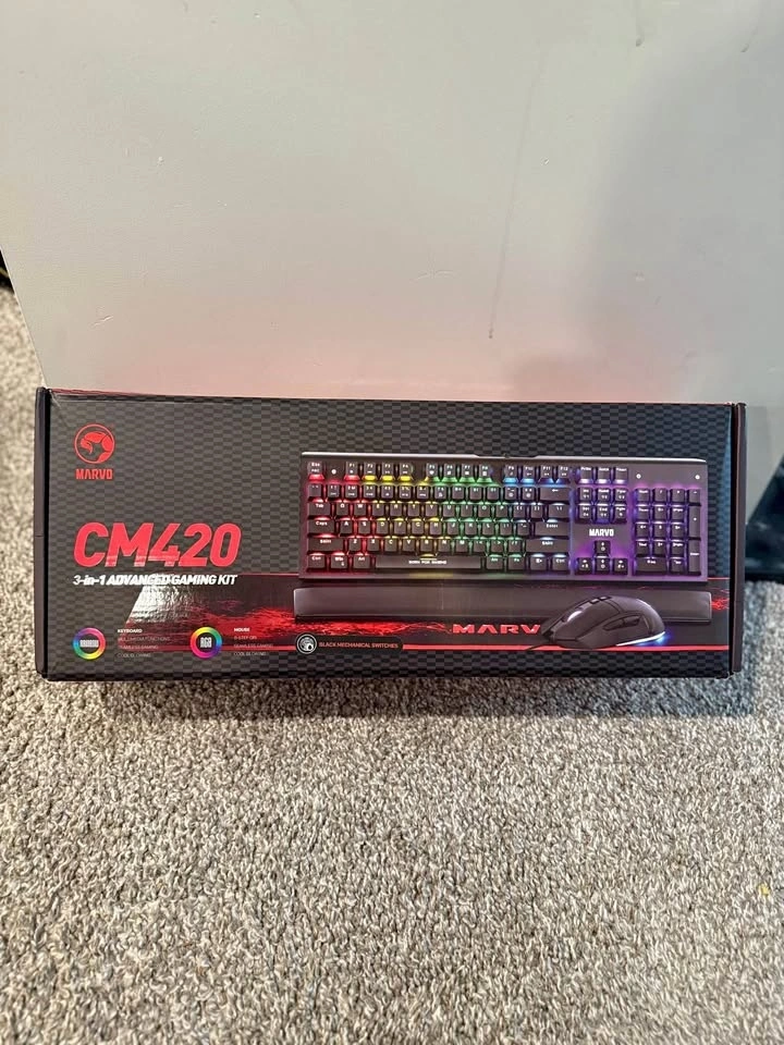 Brand new Marvo CM420 3-in-1 advanced gaming kit, includes a keyboard, mouse, and mousepad. The keyboard features customizable RGB lighting, and the mouse is designed for precision and comfort. Perfect for enhancing your gaming setup. Never used, still in box! Text me at 403_926_6669.