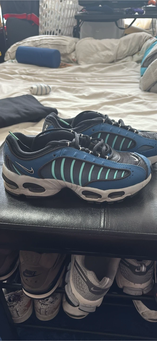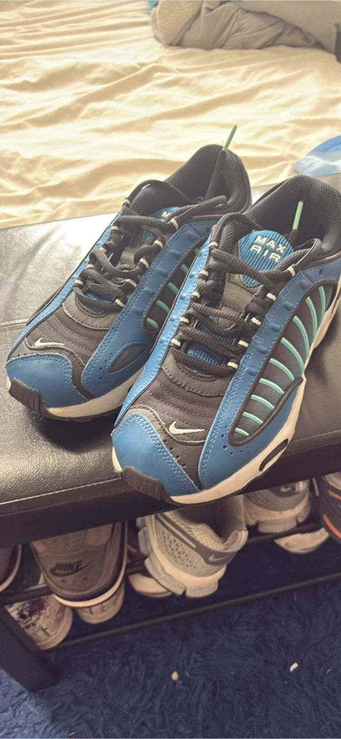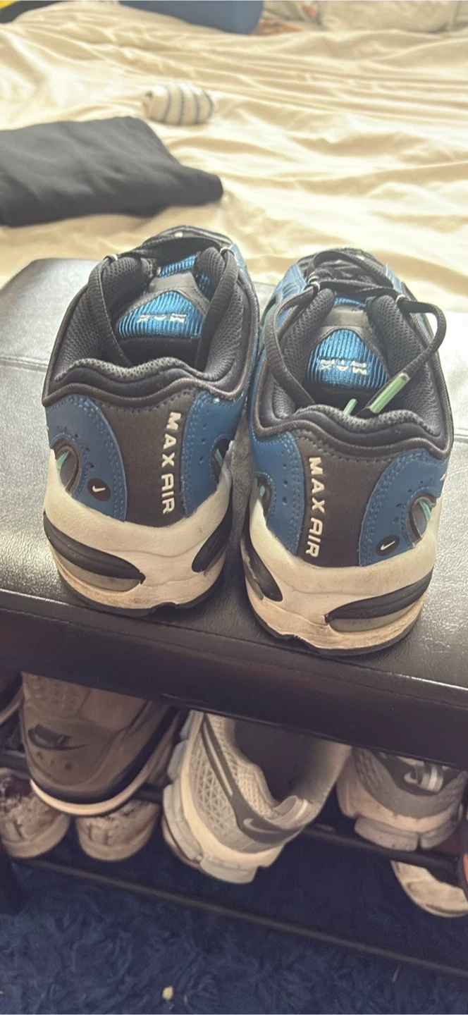 Selling a pair of Nike Air Max Tailwind IV sneakers in blue! These are a youth size 6.5, which translates to a US women's size 8. They feature the classic Max Air cushioning for comfort and style. Don't miss out!