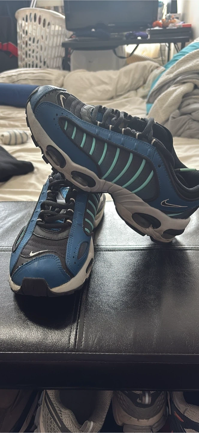Selling a pair of Nike Air Max Tailwind IV sneakers in blue! These are a youth size 6.5, which translates to a US women's size 8. They feature the classic Max Air cushioning for comfort and style. Don't miss out!