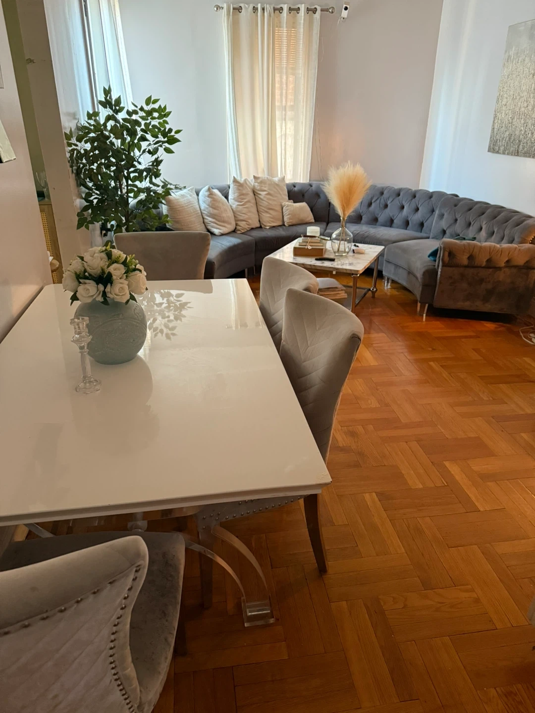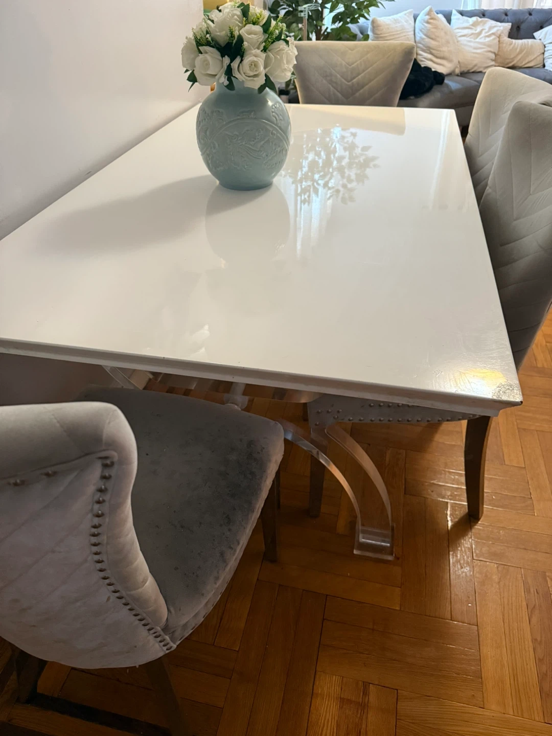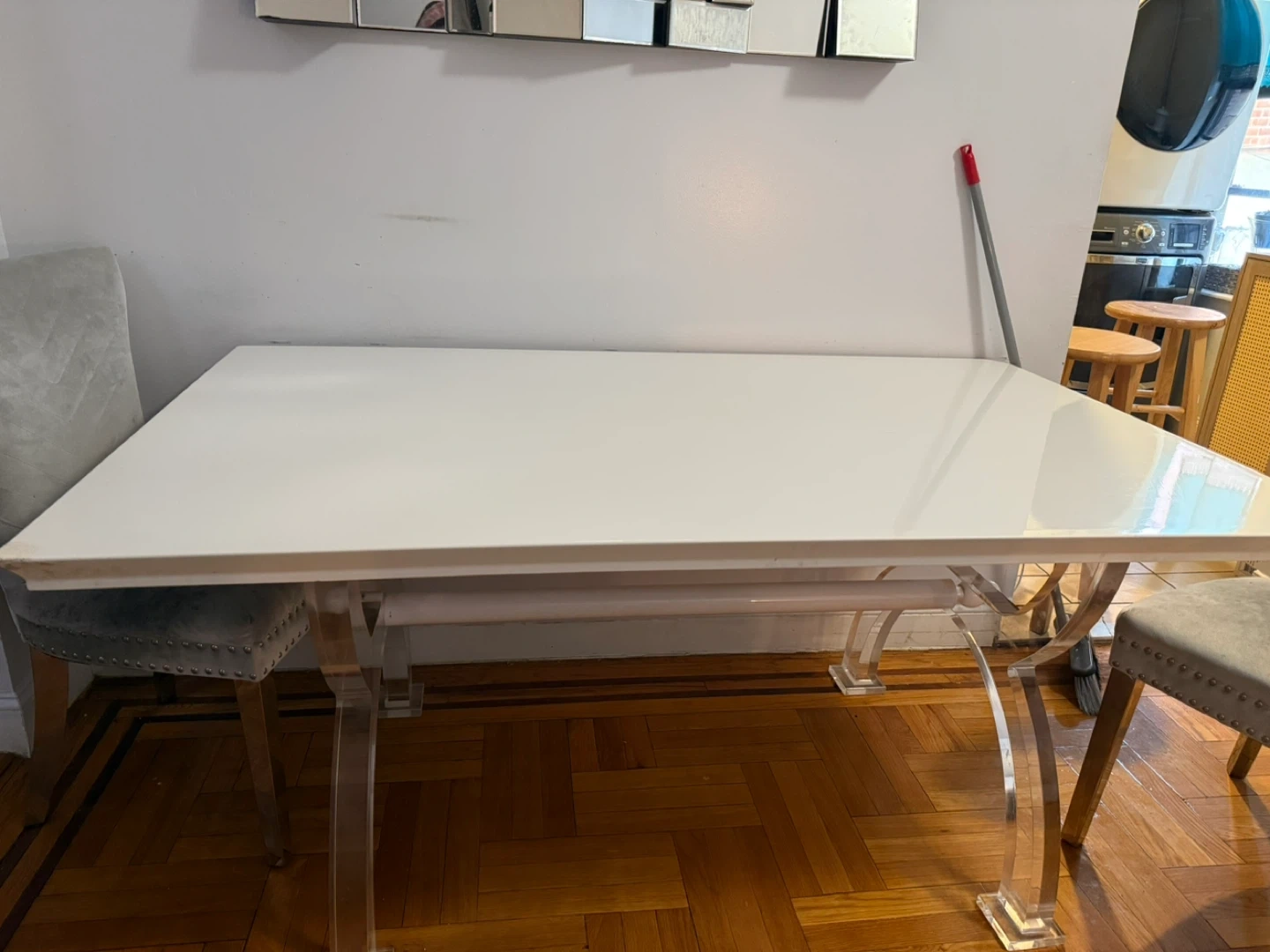 • Elegant white table with clear acrylic-style legs