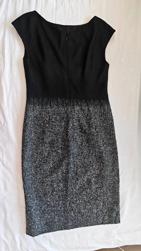 Selling this beautiful sleeveless dress featuring a solid black top and a textured grey/black patterned skirt. It’s an elegant, modern design that works perfectly for the office or a casual evening out. Size: Medium (M). Color: Two-tone (Black top, Textured Grey/Black bottom). Style: Sleeveless, flattering shift dress silhouette. Condition: Excellent pre-owned condition. Very clean and well-maintained. Local pickup only near Don Mills Subway Station / Fairview Mall.