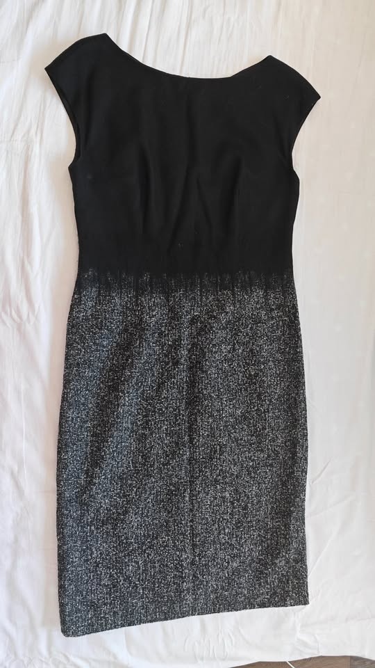 Selling this beautiful sleeveless dress featuring a solid black top and a textured grey/black patterned skirt. It’s an elegant, modern design that works perfectly for the office or a casual evening out. Size: Medium (M). Color: Two-tone (Black top, Textured Grey/Black bottom). Style: Sleeveless, flattering shift dress silhouette. Condition: Excellent pre-owned condition. Very clean and well-maintained. Local pickup only near Don Mills Subway Station / Fairview Mall.