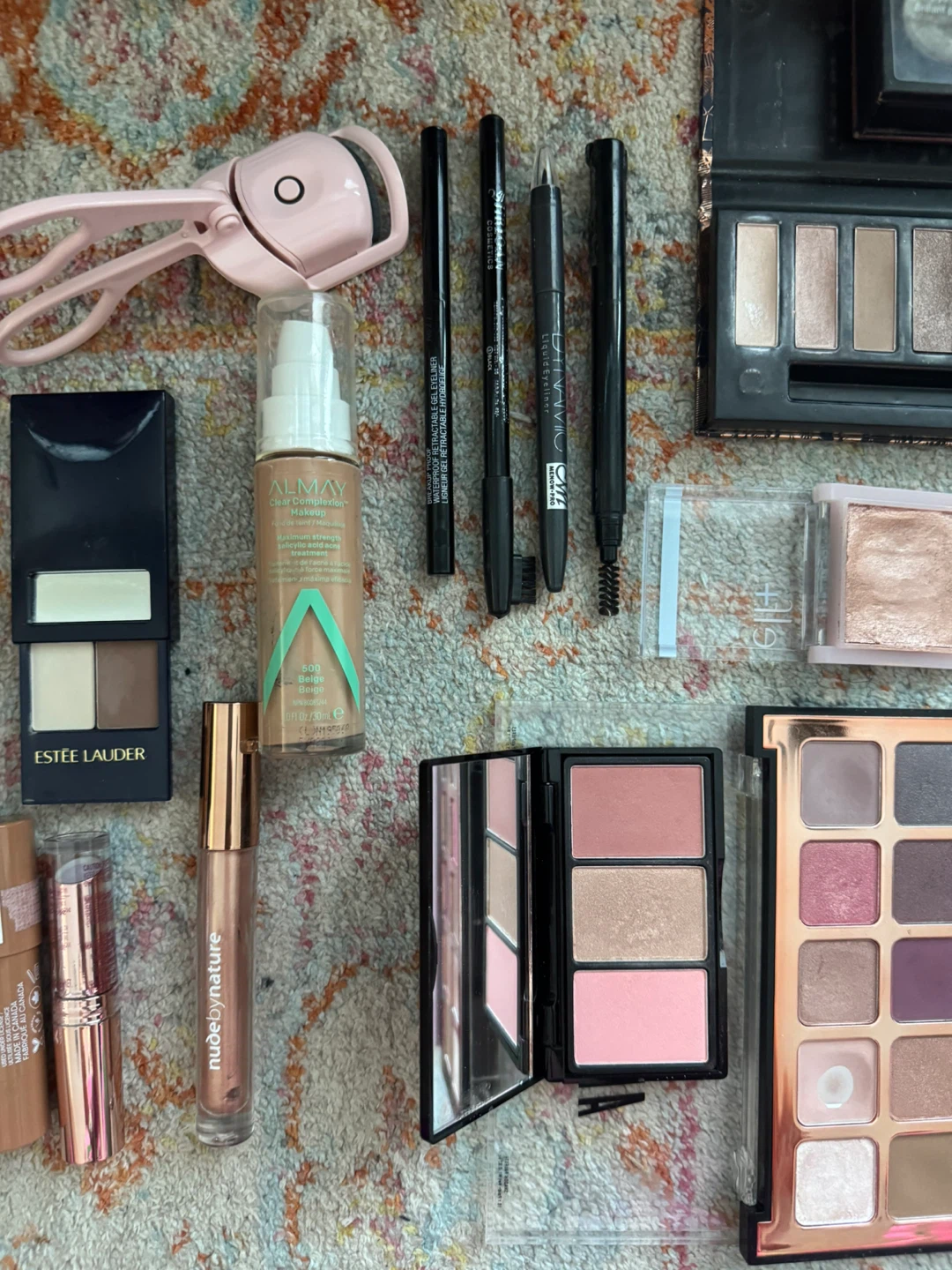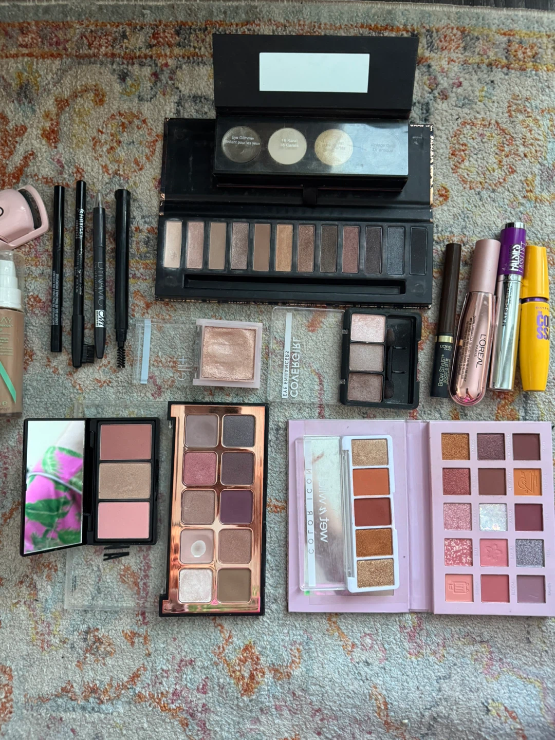 Selling a variety of makeup items! This lot includes eyeshadow palettes, makeup brushes, and other cosmetics from brands like e.l.f., Estee Lauder, Covergirl, and more. Great for experimenting with different looks or stocking up on your favourites