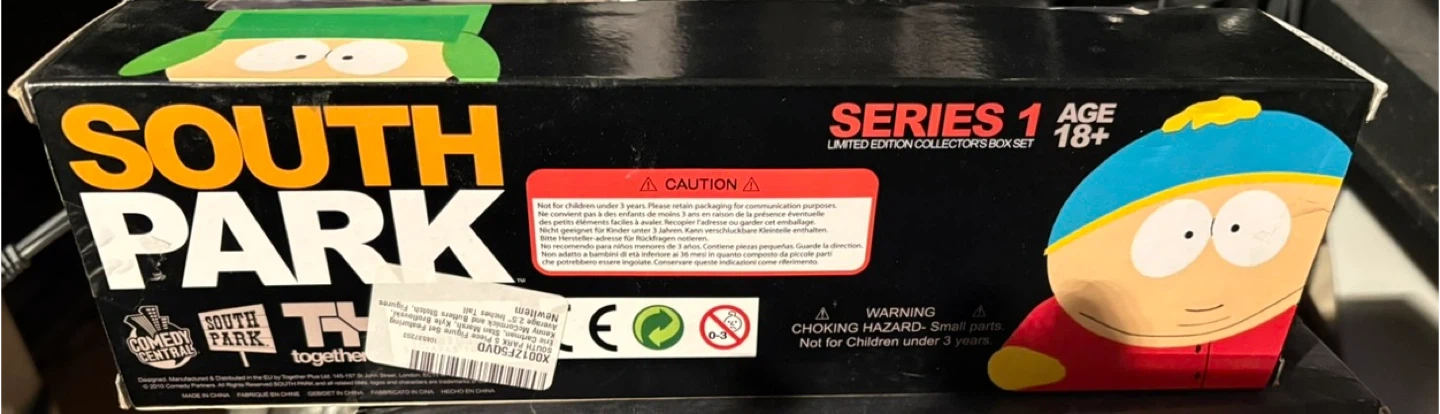 This is the South Park Series 1 Limited Edition Collector's Box Set. It includes five mini figures from the popular animated show. Figures are for ages 18+.