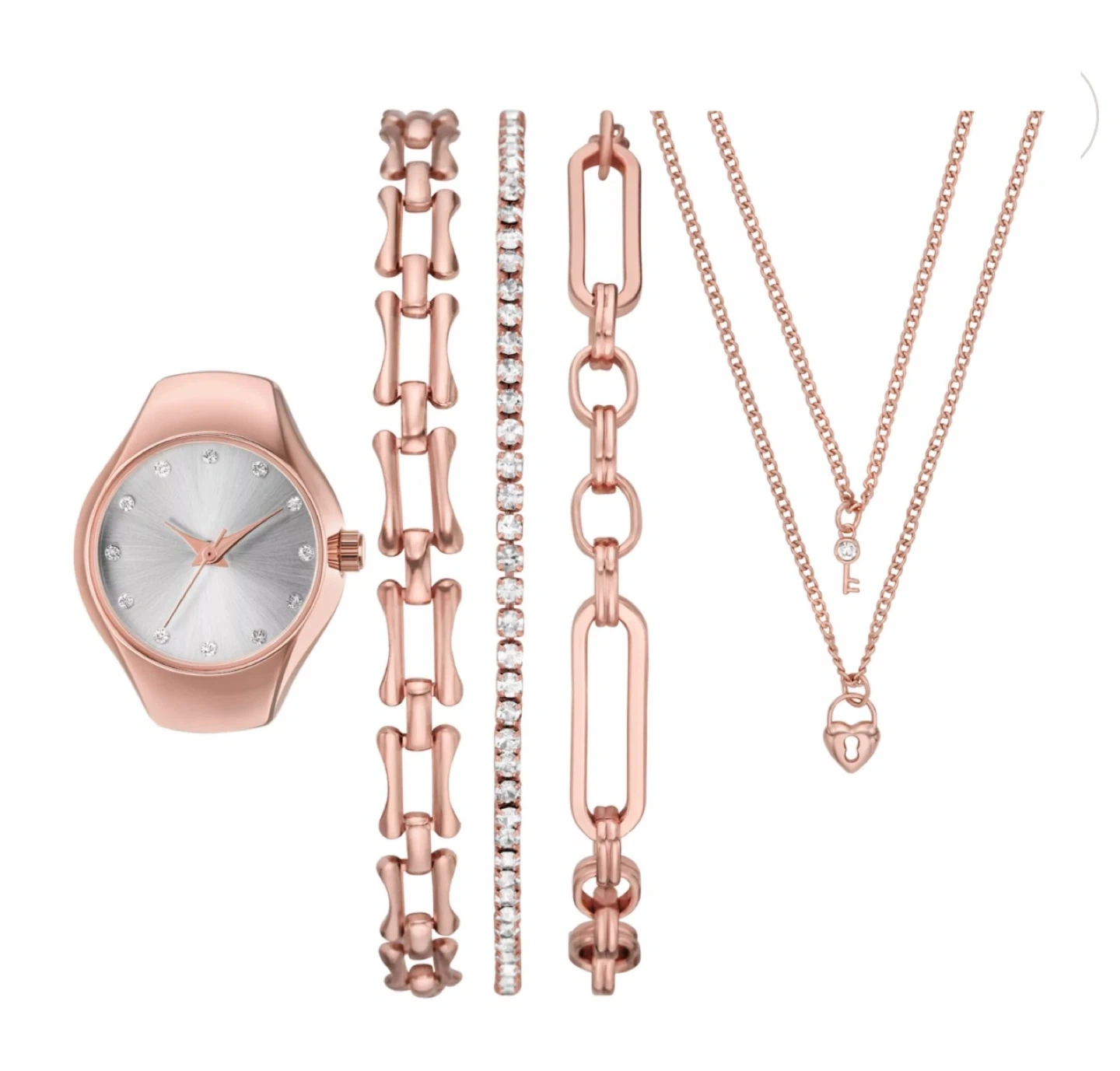 Rose Gold Watch, Bracelet, & Necklace Set of 5