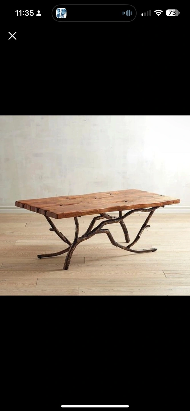 This is an acacia wood and wrought iron coffee table from Pier One Imports. One of a kind work of art.