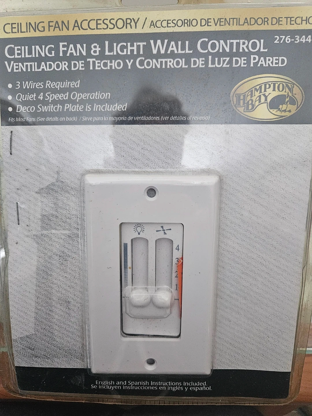 Hampton Bay Ceiling Fan & Light Wall Control -Never Used