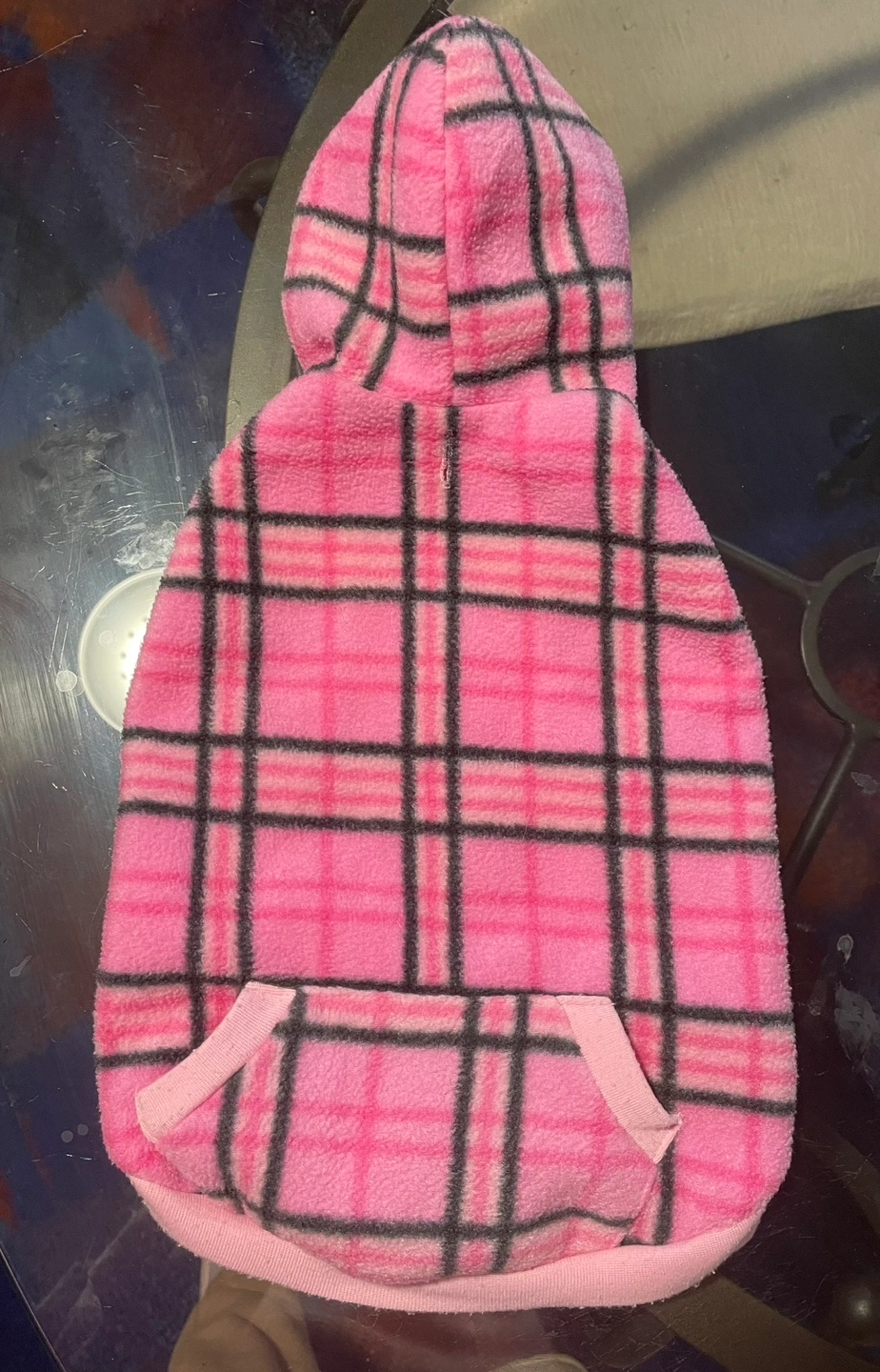 💚Adorable pink and grey plaid fleece dog hoodie.