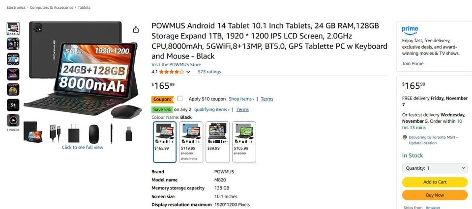 POWMUS Android Tablet 10.1 Inch 24 GB RAM 128GB Expand