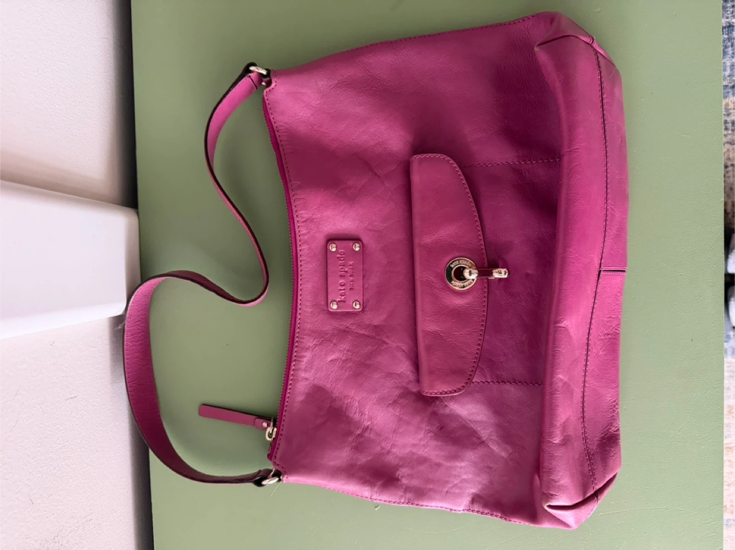 Selling two Kate Spade shoulder bags in a lovely pink leather and another in emerald green. Both in great condition and has a unique look. Offer is for one but can sell them together if wanted!