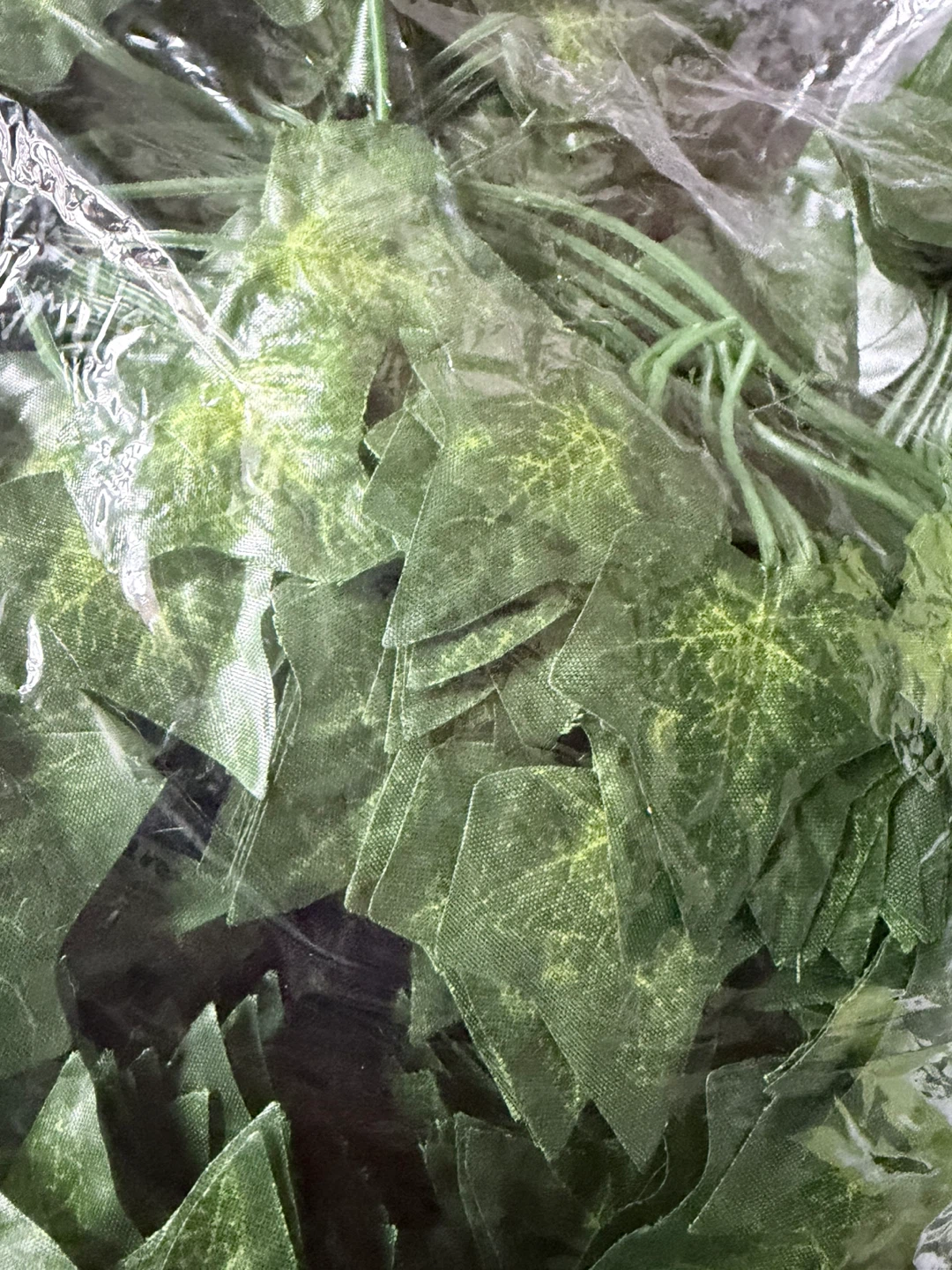 Bunch of artificial ivy garland vines. Each vine has multiple leaves attached to a flexible green stem. Great for decorating walls, fences, or event spaces. NEW still in bag!