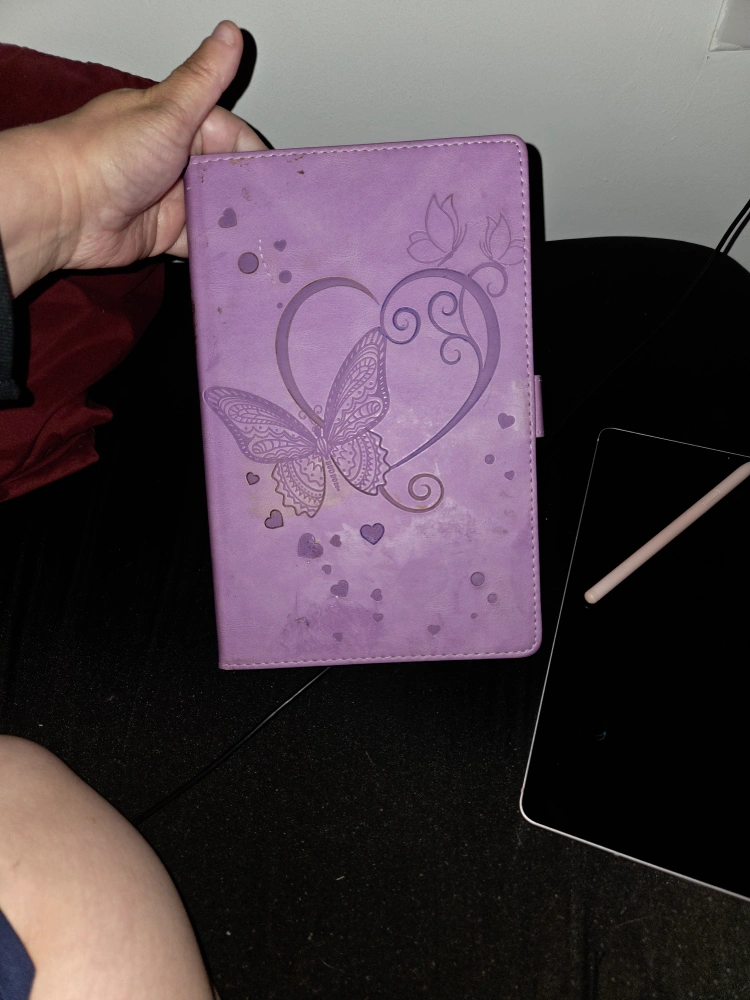 Selling a used Samsung Galaxy Tab S6 Lite tablet. It comes with a lavender case with a butterfly design and an S Pen. There are some signs of use on the screen and back, but it functions perfectly fine. Great for taking notes or watching videos! No charger!