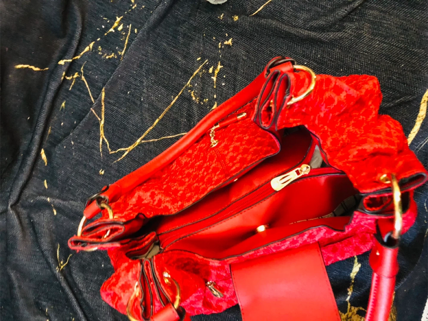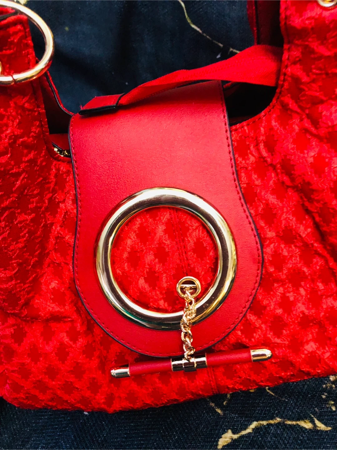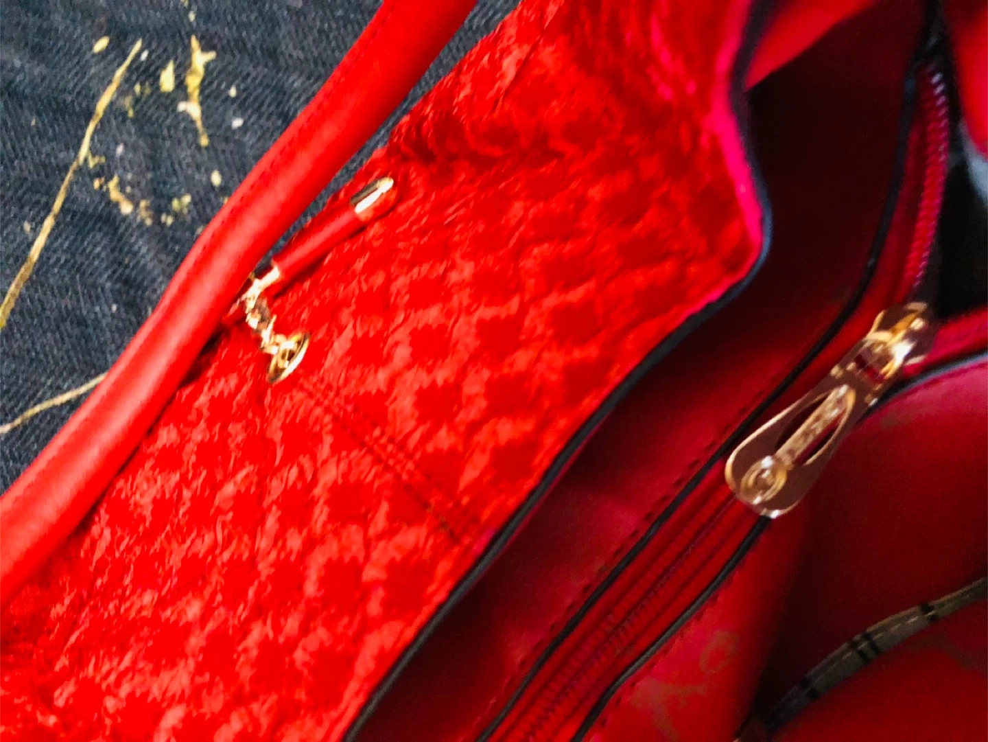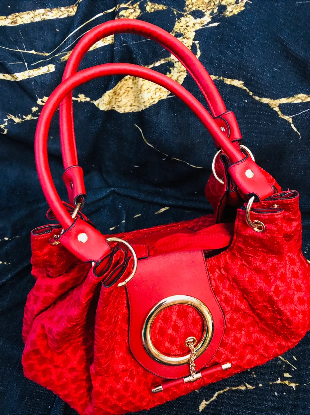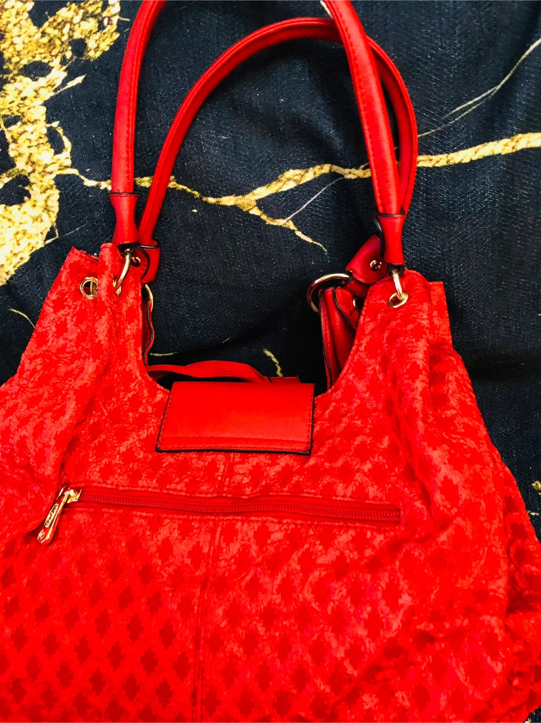 Stylish Italian brand new red handbag featuring a textured exterior and elegant gold hardware. It has a zippered main compartment and a secure front flap closure. This bag is perfect for everyday use or a night out!