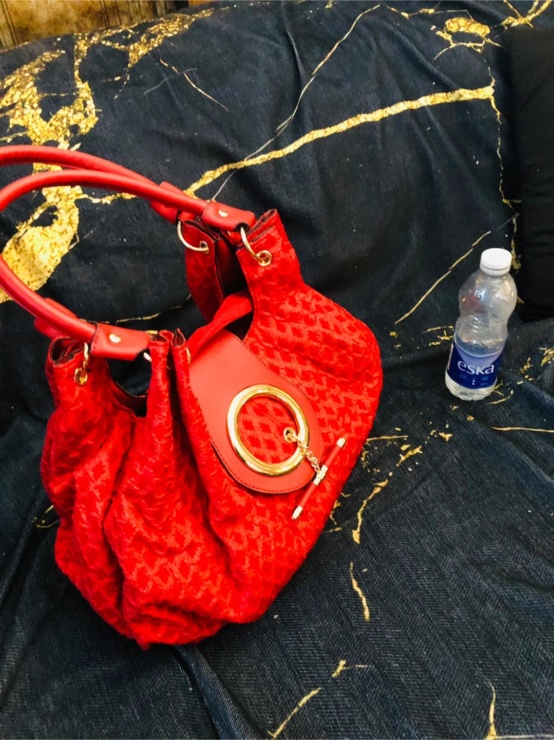 Stylish Italian brand new red handbag featuring a textured exterior and elegant gold hardware. It has a zippered main compartment and a secure front flap closure. This bag is perfect for everyday use or a night out!