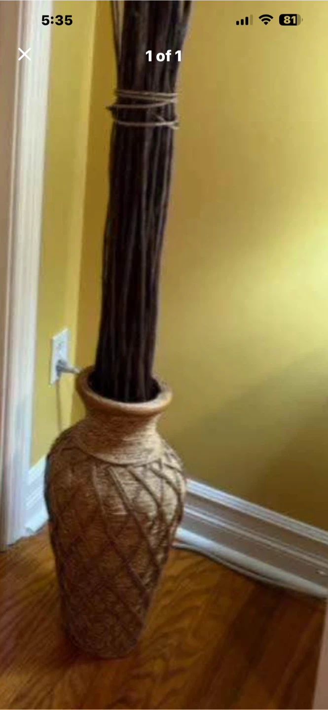 Tall decorative vase with a woven texture, filled with natural brown stems. It's perfect for adding a touch of organic style to any room.