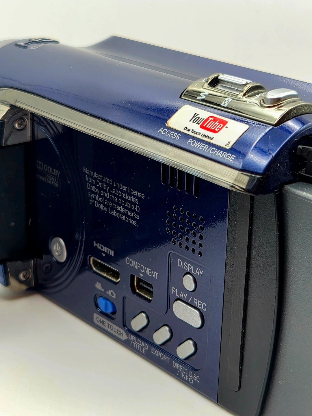 This JVC Everio camcorder records in Full HD 1920x1080 resolution. It features optical zoom and Dolby Digital audio recording. Includes One Touch Export functionality.