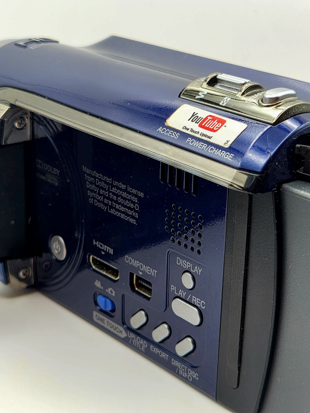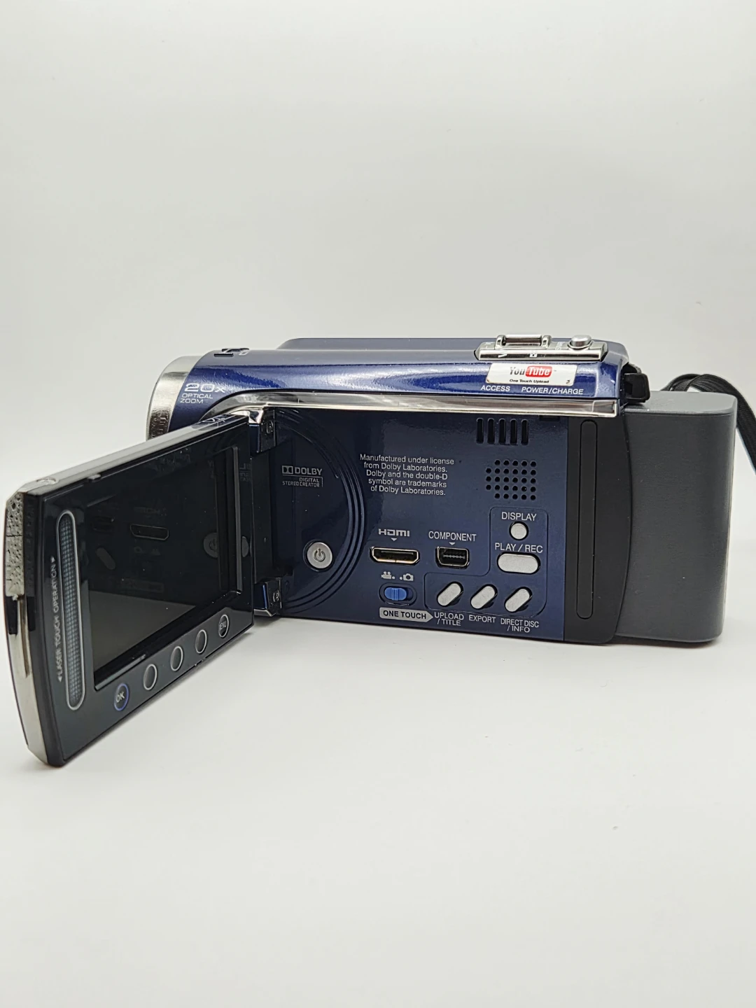This JVC Everio camcorder records in Full HD 1920x1080 resolution. It features optical zoom and Dolby Digital audio recording. Includes One Touch Export functionality.