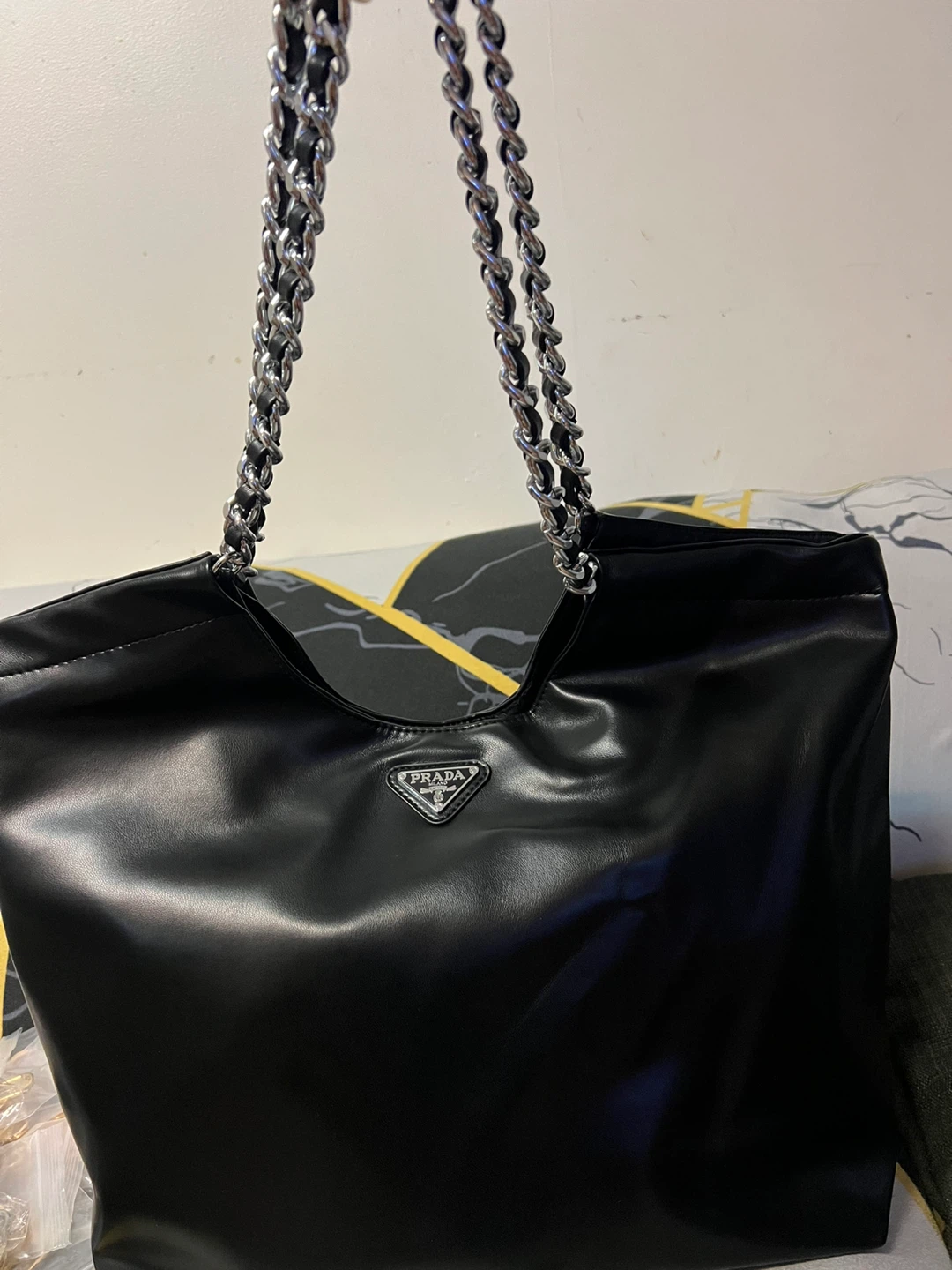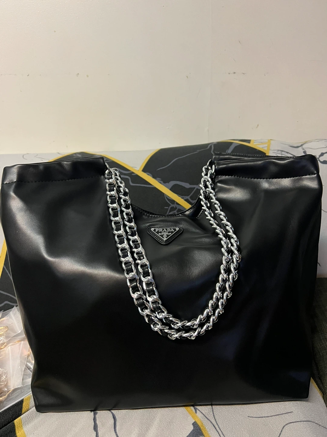 Buy & SellPrada Black Leather Chain Tote Bag XLPrada Black Leather Chain Tote Bag XL$150Selling a Prada black leather tote bag with chain detailing. XL bag!ConditionNewBrandPradaWHERE TO MEETCheck LocationView MapSELLERverifiedChelyMalton994 reviews6 chats·8 favorites·138 viewsSEND CHAT TO SELLERHi Chely! I’m interested in your listing.Hi Chely! I’m interested in your listing.Get the Karrot app to chatSign In to chat