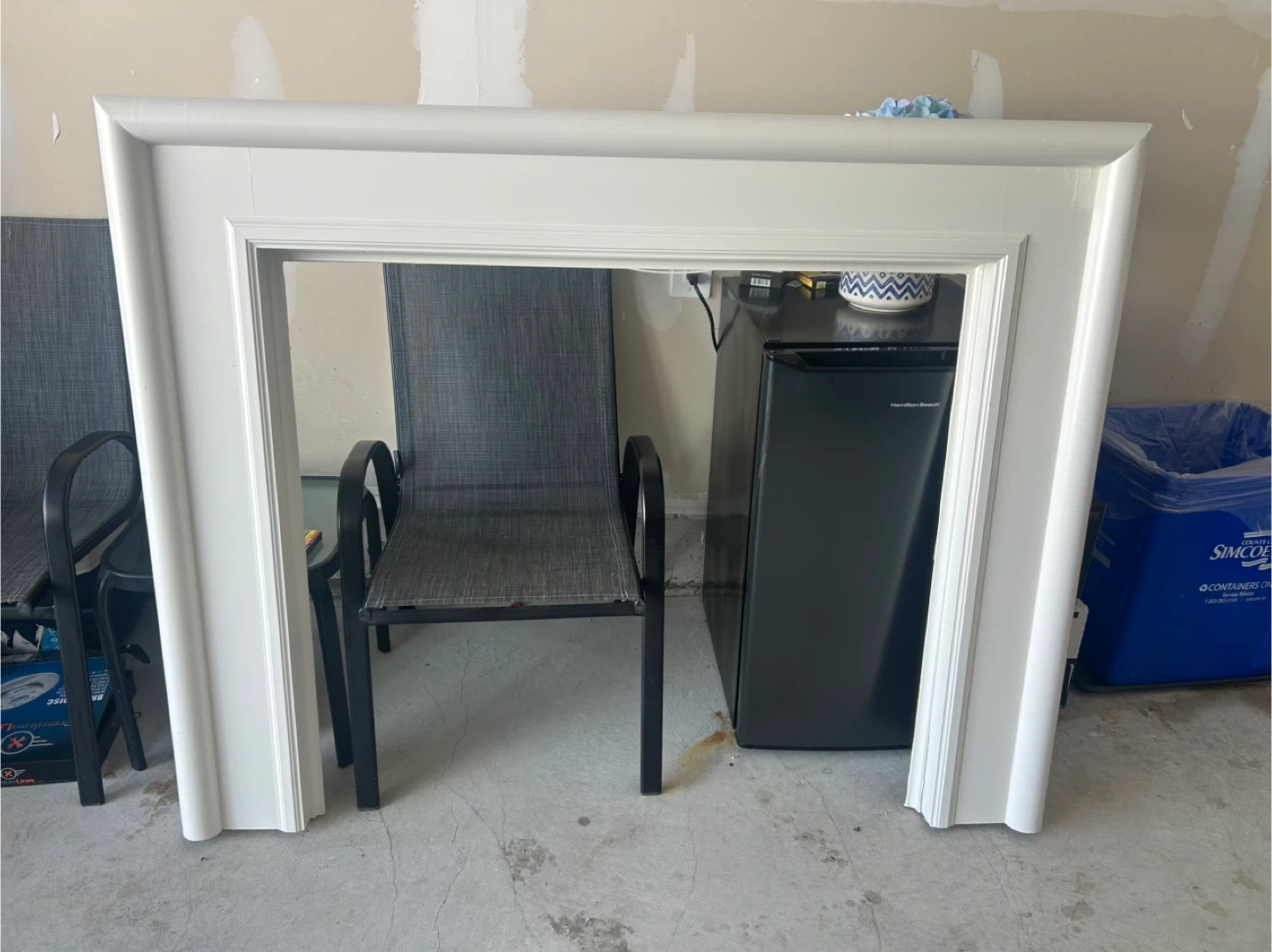 Selling a fireplace mantel, perfect for adding a touch of elegance to your living space! It comes with beautiful marble tiles. Ready to be installed and enjoyed in your home