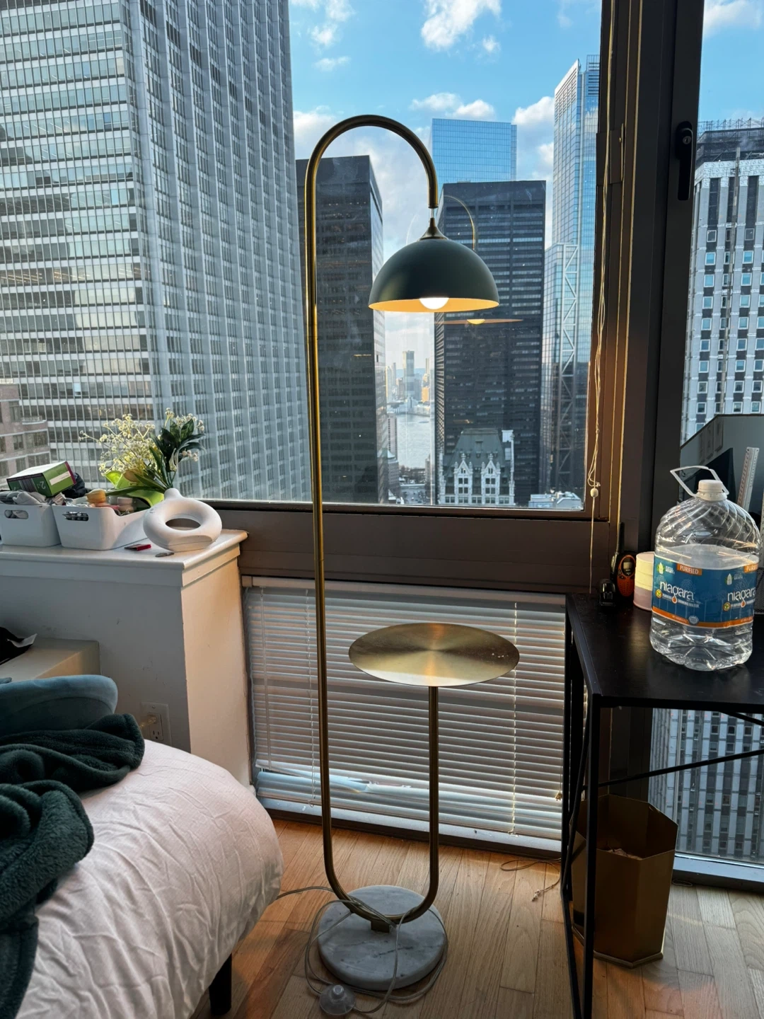 Selling a stylish floor lamp with an attached side table. It's in great condition and perfect for adding a touch of modern elegance to any room. The lamp provides a warm and inviting light, while the side table offers a convenient spot for drinks or books. It's a great combination of functionality and design