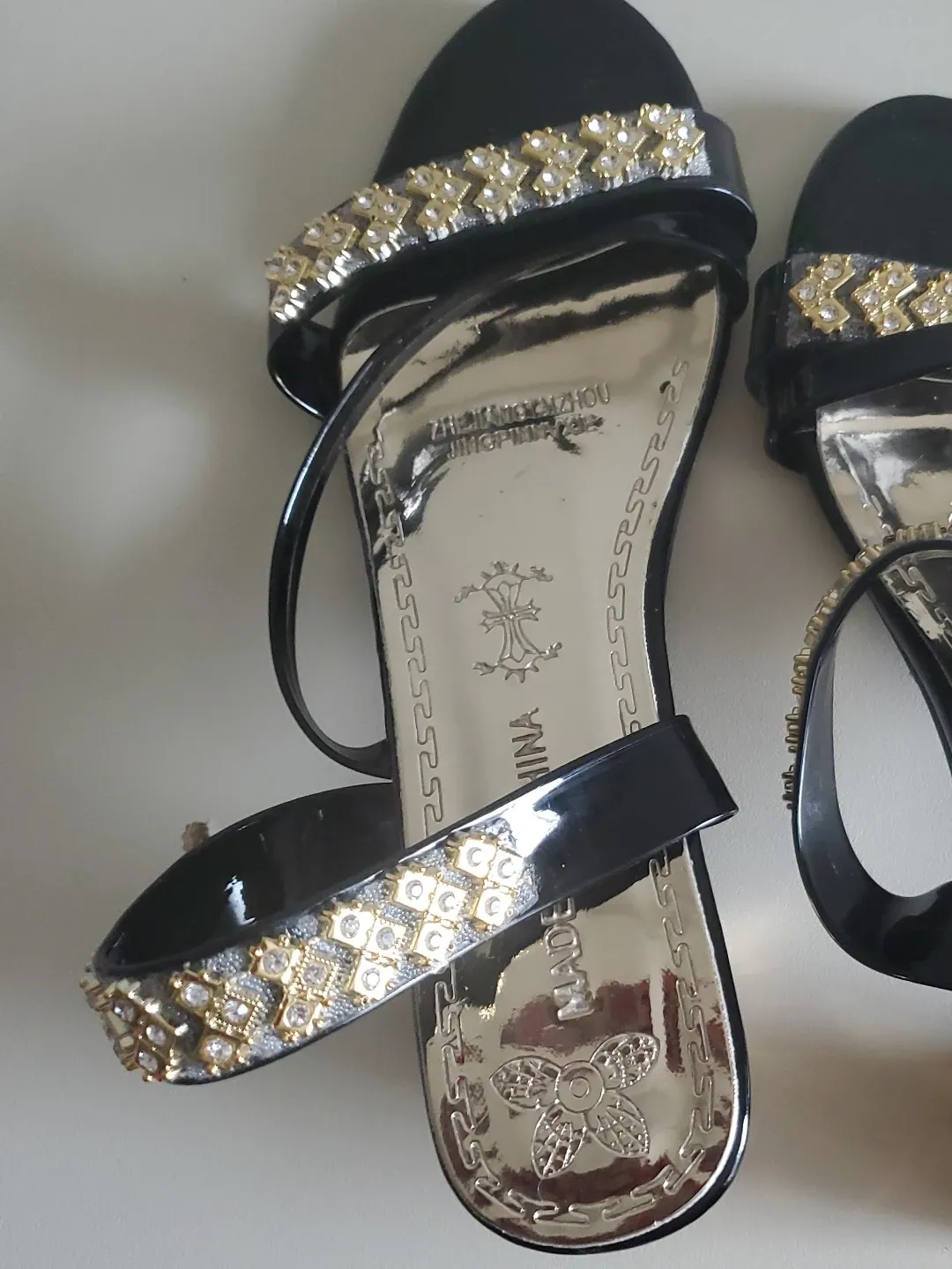 Black & Gold Embellished Sandals