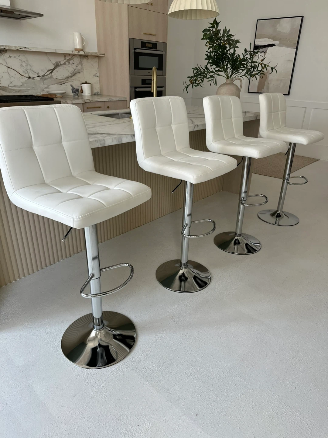 4 White Adjustable Bar Stools