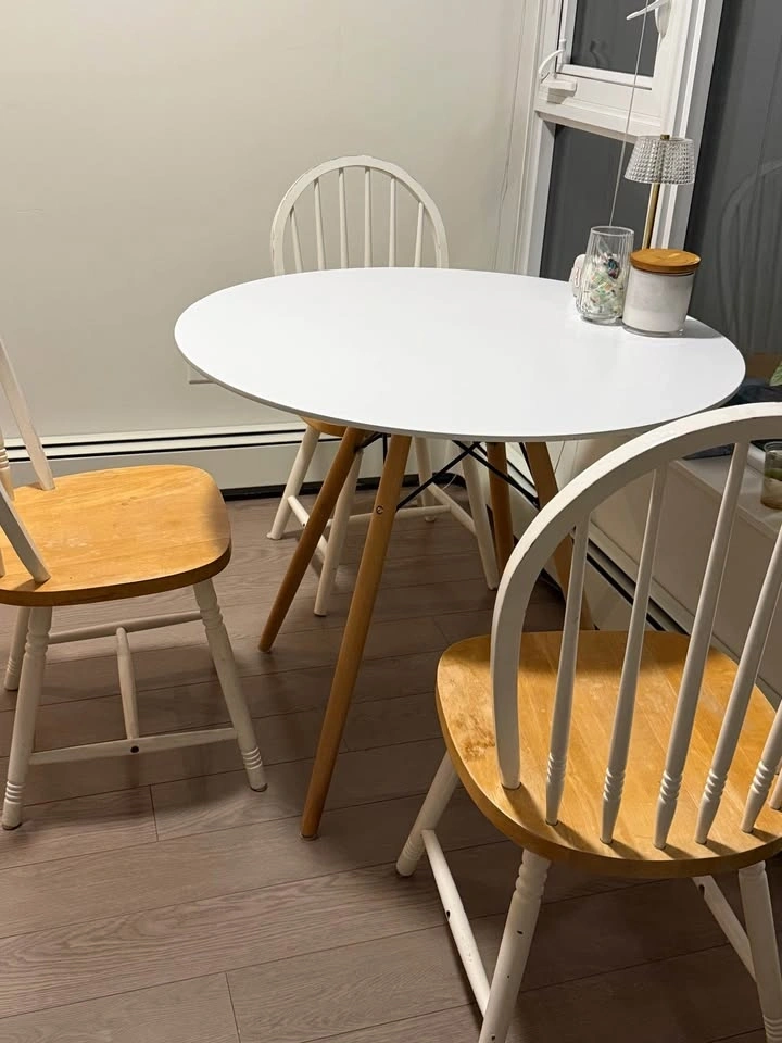 Wooden Round Dining Table + 3 Chairs