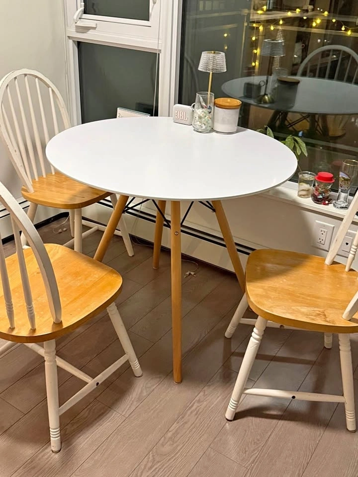 Wooden Round Dining Table + 3 Chairs