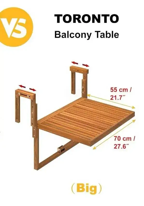 This Interbuild Toronto balcony/deck table offers a convenient 28" x 24" surface that easily folds for storage. Perfect for enjoying meals or working outdoors, it attaches securely to railings, creating a functional space-saving solution.