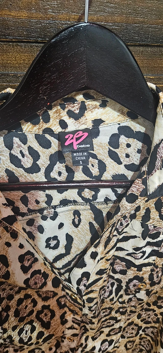 Bebe Leopard Print Button-Up Shirt Size S/M