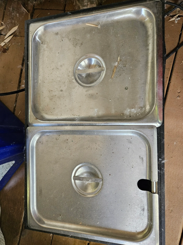 Selling a Medalie Division Idea 1000 food warmer. It appears to be in used condition and includes the main unit and two trays. Great for keeping food warm during gatherings or events!